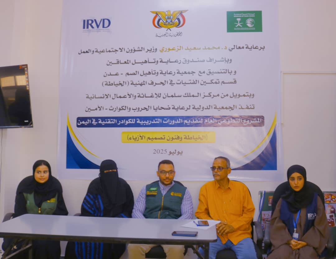 برعاية معالي د. محمد سعيد الزوعري، وزير الشؤون الاجتماعية والعمل، وبإشراف صندوق رعاية وتأهيل المعاقين، وبالتنسيق مع جمعية رعاية وتأهيل الصم عدن، “قسم تمكين الفتيات في الحرف المهنية – الخياطة”، تنفذ الجمعية الدولية لرعاية ضحايا الحرب والكوارث – الأمين مشروعًا تطوعيًا عامًا لتقديم الدورات التدريبية لكوادر التقنية في الخياطة وفنون تصميم الأزياء.