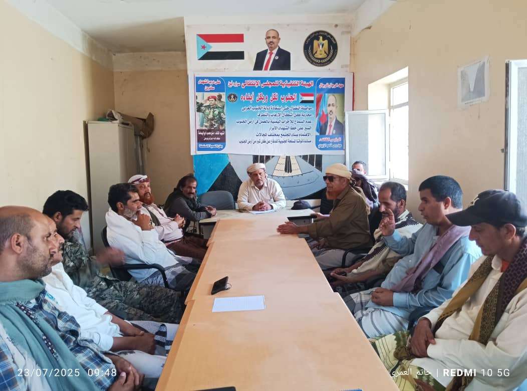 عقدت الهيئة التنفيذية للقيادة المحلية للمجلس الانتقالي الجنوبي بمديرية سرار في محافظة أبين، اليوم الأربعاء، اجتماعها الدوري لشهر يوليو، برئاسة رئيس الهيئة الأستاذ علي ناصر الحامدي.