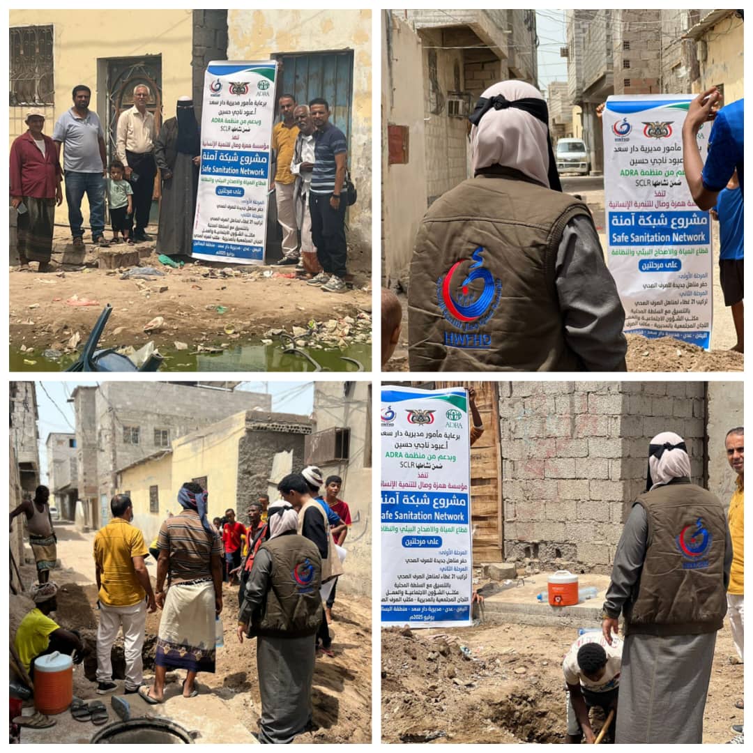 وعبرت الدكتورة دعاء أنور الشرجبي رئيسة مؤسسة همزة وصال للتنمية الإنسانية عن شكرها وامتنانها للجهود المتفانية التي يبذلها الأستاذ عبود ناجي حسين مأمور مديرية دار سعد في تسهيل عمل منظمة همزة وصال للتنمية الإنسانية لتدشين المرحلة الأولى من مشروع “شبكة آمنة” في منطقة البساتين بمديرية دار سعد ، وكذلك شكرها وامتنانها للقائمين من منظمة ADRA لدعمها هذا المشروع ضمن نشاطها SCLR للعام 2025، والذي يهدف إلى تحسين خدمات الإصحاح البيئي والصرف الصحي في المجتمعات ذات الأولوية ، وشكرا لكل الحاضرين وفي مقدمتهم الأستاذ أنيس غازي نائب رئيس اللجان المجتمعية بمديرية دار سعد والأستاذ أحمد عبدالوهاب محمود مدير مكتب وكيل قطاع الرعاية الاجتماعية بوزارة الشؤون الاجتماعية والعمل، الذي تم تكليفه من وكيل الوزارة الأستاذ صالح محمود حسن ، وكذا الأستاذ عبد المنان ممثل منظمة أدرا ” .