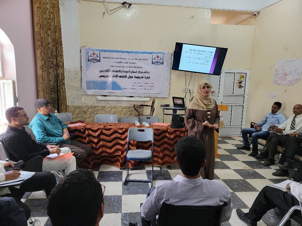 وقد نفذت هذه الدورة التدريبية مساعد رئيس الجامعة لشؤون ضمان الجودة والاعتماد الأكاديمي بالجامعة الدكتورة شعاع مهدي الهدار .