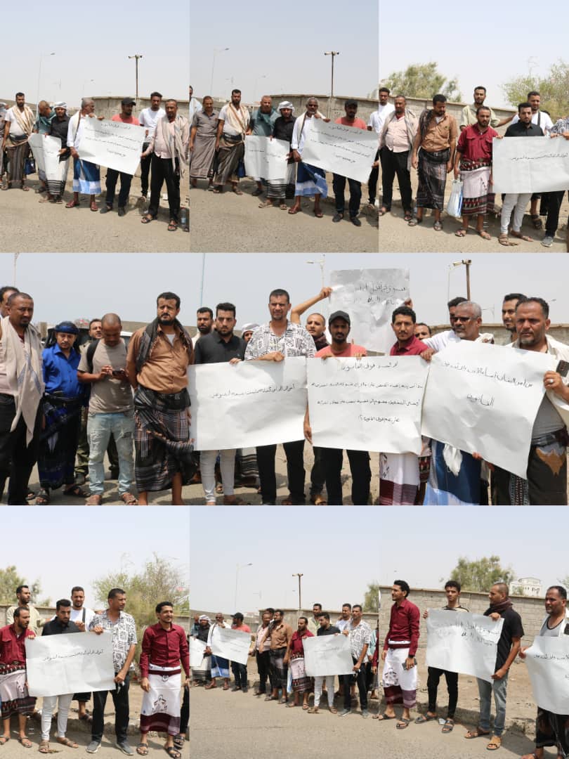نفذ صباح اليوم تجار في العاصمة عدن وقفة احتجاجية أمام مكتب النائب العام بخورمكسر، وذلك للمطالبة باستعادة حقوقهم المنهوبة بقيمة 45 مليون ريال سعودي من قبل شركة الصرافة، و رفع المحتجون لافتات تطالب الجهات المعنية باستعادة حقوقهم ومحاسبة الجناة.