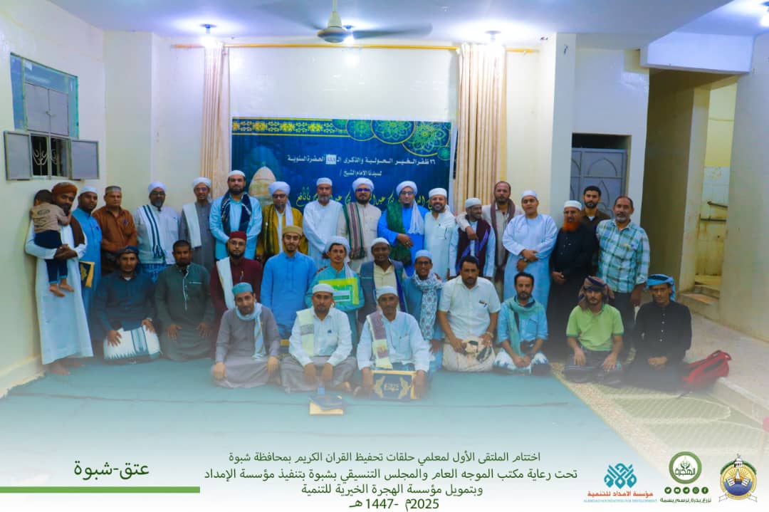 في أجواء إيمانية تعبق بأنوار القرآن الكريم والسنة النبوية الشريفة ، وتحت شعار “قل هذه سبيلي أدعو إلى الله على بصيرة “، شهدت محافظة شبوة ومديرية المحفد إقامة الملتقى الأول لمعلمي حلقات تحفيظ القرآن الكريم وعلومه الشرعية، وذلك برعاية كريمة من مكتب الموجه العام للأربطة الإسلامية مراكزها التعليمية والمهنية ، والمجلس التنسيقي للأربطة والمراكز التعليمية بمحافظة شبوة، وبتمويل سخي من مؤسسة الهجرة الخيرية للتنمية، وتنفيذ مؤسسة الإمداد للتنمية.