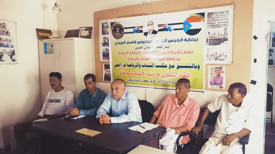انتقالي أبين ينظم لقاءً تشاورياً مع رؤساء الأندية الرياضية بالمحافظة