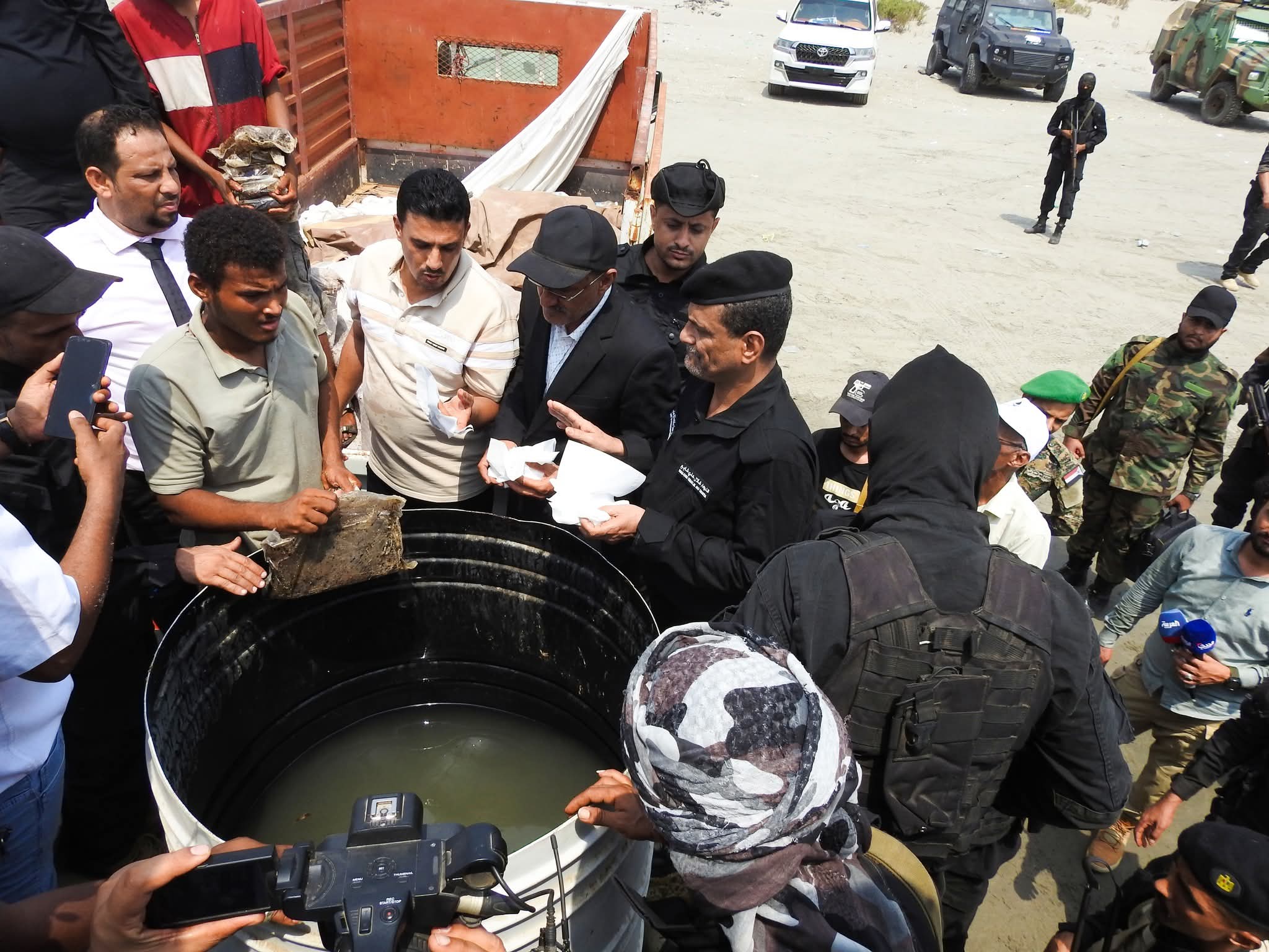 وخلال عملية الإتلاف، قال اللواء الركن شلال علي شايع في تصريح صحفي لوسائل الإعلام إن جهاز مكافحة الإرهاب تمكن في 21 أغسطس الماضي من ضبط هذه الشحنة في عملية نوعية بالتنسيق المباشر مع النيابة الجزائية المتخصصة، مؤكداً أنها كانت في طريقها إلى مليشيات الحوثي الإرهابية.