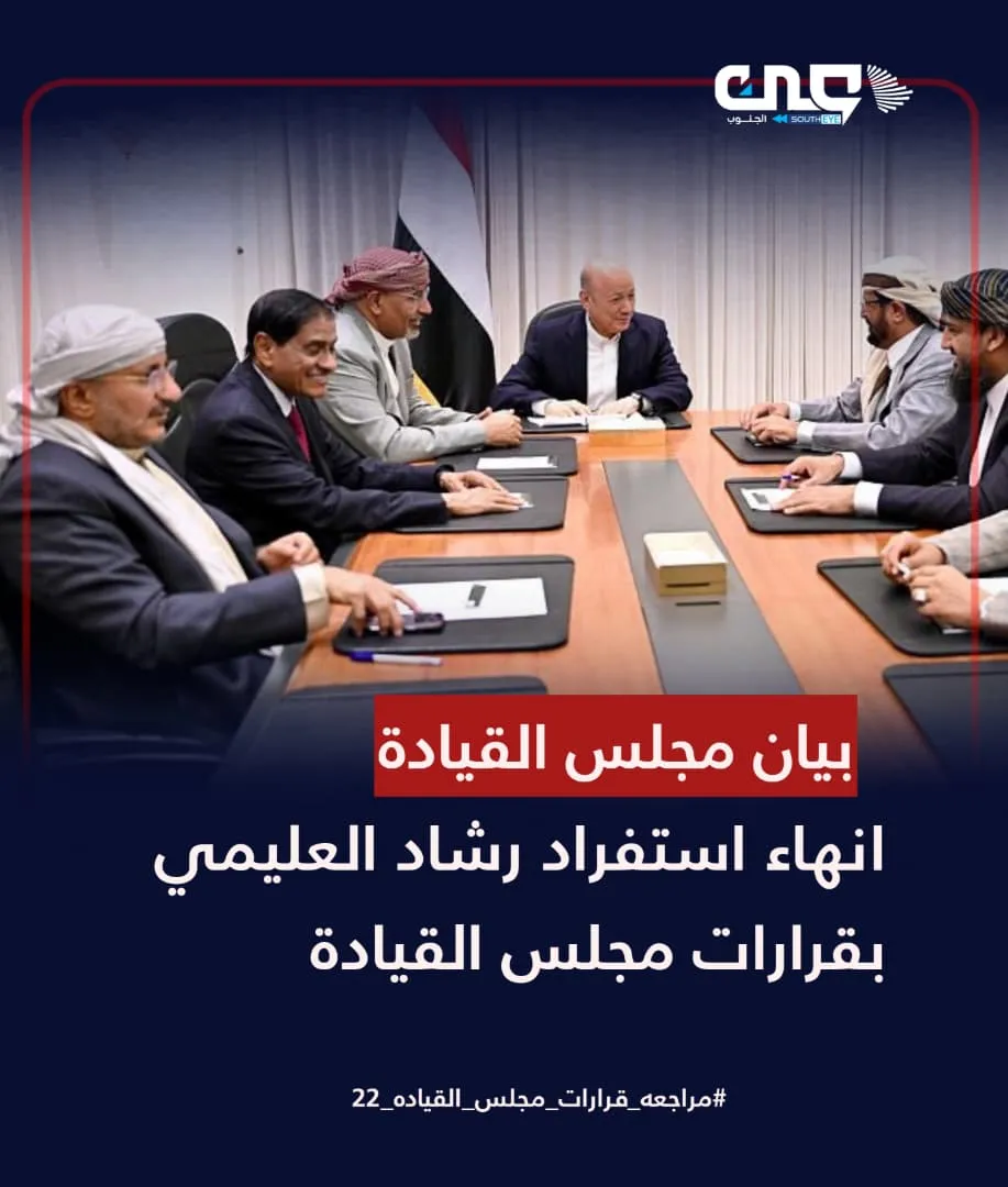 أوضح البيان أن الهدف من المراجعات القادمة هو إنهاء أي حالة استفراد أو تمرير للقرارات من قبل الدكتور رشاد العليمي، رئيس مجلس القيادة الرئاسي، دون مشاركة باقي أعضاء المجلس.