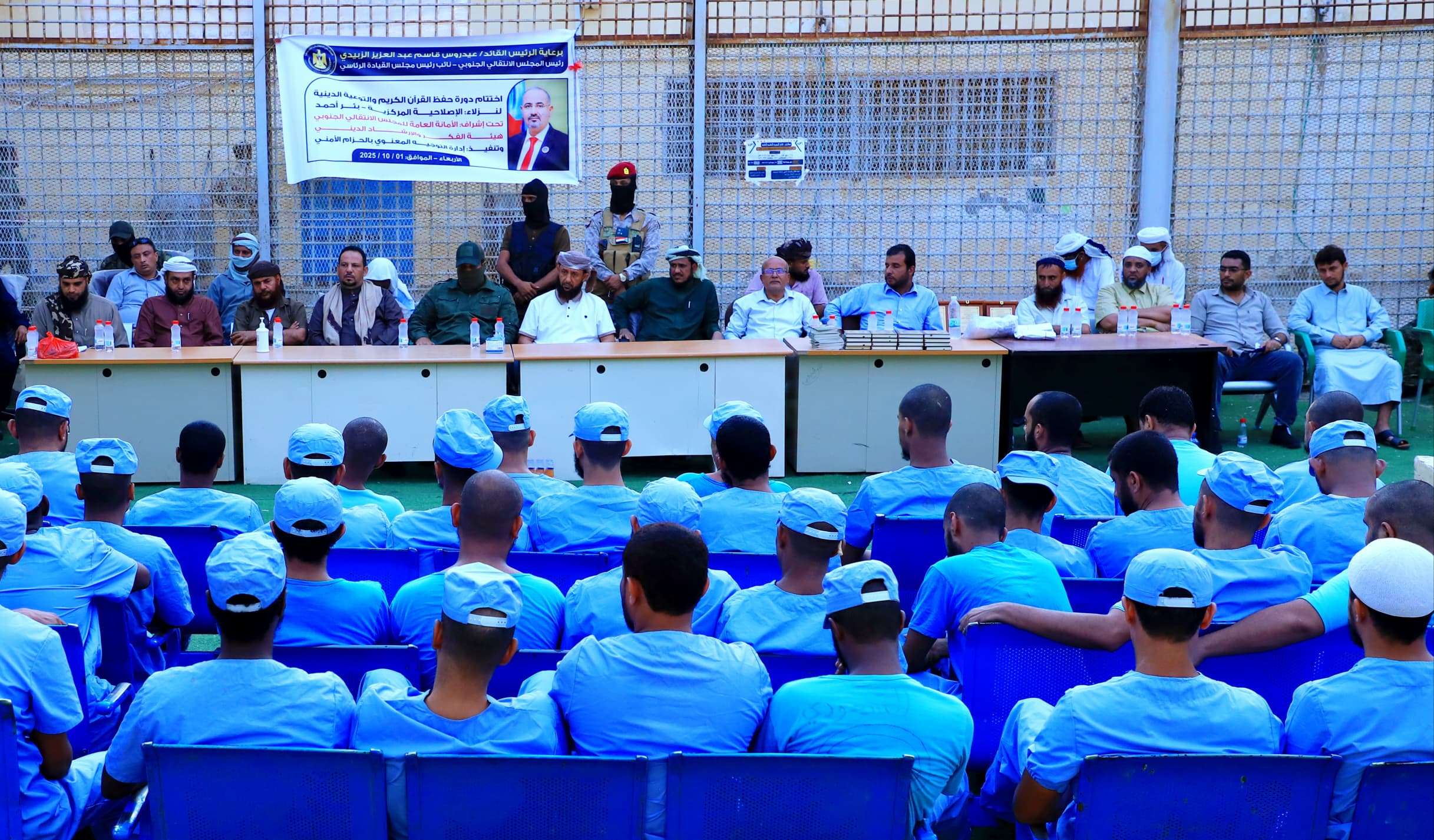 اختتمت اليوم الأربعاء في الإصلاحية المركزية في بئر أحمد بالعاصمة عدن، دورة لحفظ القرآن الكريم والتوعية الدينية الموجهة لنزلاء الإصلاحية، وذلك بإشراف هيئة الفكر والإرشاد الديني في الأمانة العامة لهيئة رئاسة المجلس الانتقالي الجنوبي، وبتنفيذ من إدارة التوجيه المعنوي في قوات الحزام الأمني.