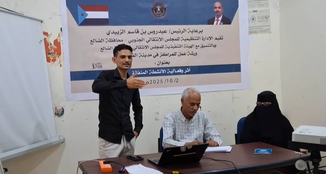 نظمت الإدارة التنظيمية في الهيئة التنفيذية للقيادة المحلية للمجلس الانتقالي الجنوبي بمحافظة الضالع، اليوم الخميس، ورشة عمل بعنوان “أثر وفعالية الأنشطة المنفذة”، استهدفت رؤساء اللجان المحلية في مراكز مدينة الضالع، بحضور مدير الإدارة التنظيمية الأستاذ محمود قائد مثنى عمر، ومديرة إدارة المرأة والطفل الأستاذة جليلة علي.