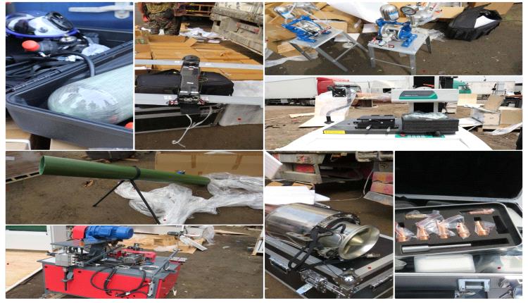 فقد جرى ضبط 58 حاوية، تزن مجتمعة أكثر من 2500 طن، كانت محملة بمعدات عسكرية متطورة، ابتداءً من الطائرات المسيّرة ومنصات الإطلاق، وصولاً إلى مصانع وورش كاملة لتصنيع الطائرات المسيرة و الأسلحة، من مخارط و مكابس و مكائن حقن بلاستيك، إلى جانب سبائك الألومنيوم، الصفائح الحديدية، المحركات النفاثة، أجهزة الاتصال والتشويش، الكاميرات الحرارية، وحتى الملابس الواقية للفرق الفنية.