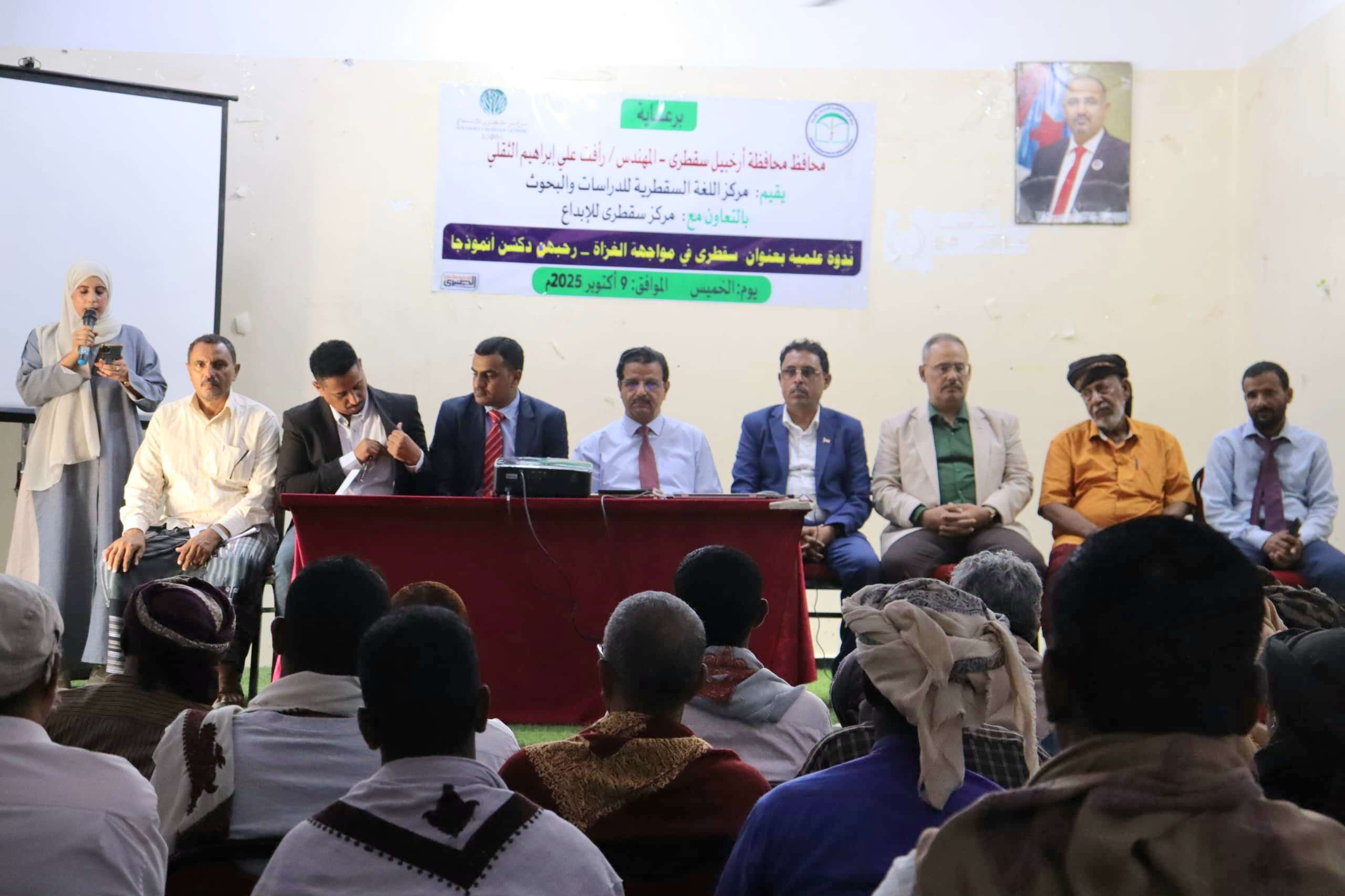 وكان رئيس مركز اللغة السقطرية للدراسات والبحوث الدكتور نوح العليمي، قد رحب بجميع المشاركين، موضحًا أن الندوة تأتي ضمن جهود المركز لتوثيق تاريخ سقطرى العريق، وكشف عن إنجاز أبجدية خاصة باللغة السقطرية تمهيدًا لاعتمادها لغة مكتوبة خلال الفترة القادمة.