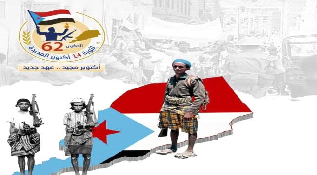 تستعد جماهير شعب الجنوب هذه الأيام لإحياء الذكرى الثانية والستين لثورة الرابع عشر من أكتوبر المجيدة، التي انطلقت شرارتها الأولى من جبال ردفان الشماء في عام 1963 ضد الاحتلال البريطاني، لتُتوَّج بعد أربع سنوات من النضال والتضحيات بالاستقلال الوطني في الثلاثين من نوفمبر 1967م. وتأتي الذكرى هذا العام في ظرف استثنائي يحمل دلالات عميقة، حيث يخوض الجنوب معركته الأخيرة نحو التحرير واستعادة الدولة، بقيادة الرئيس القائد الزعيم الرمز عيدروس بن قاسم الزبيدي، رئيس المجلس الانتقالي الجنوبي