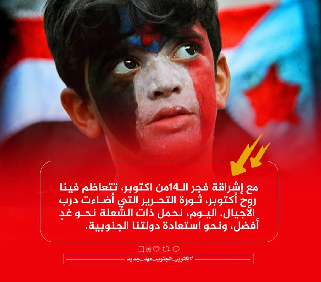 تلك هي تفاصيل ثورة الرابع عشر من أكتوبر، التي يستمد منها شعب الجنوب قوته، ويستلهم منها معطيات حياته، ومنها يستمد العِبر والدروس، لأن الشعوب مهما طال عليها ظلام المستبد وظلمه، فلا بدّ أن يشرق فجرٌ مضيءٌ تستنير به حياتها المستقبلية، وترسم به ملامح مستقبل أجيالها القادمة.