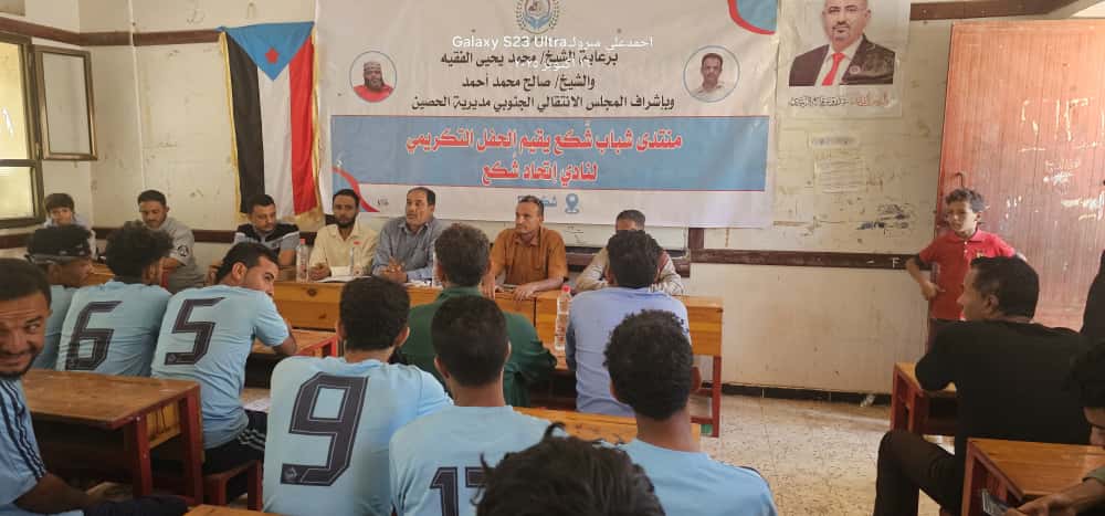 برعاية كريمة من الشيخ محمد يحيى الفقيه والشيخ صالح محمد أحمد، وبإشراف من المجلس الانتقالي الجنوبي بمديرية الحصين أقام منتدى شباب شكع الحفل التكريمي الكبير لتكريم نادي اتحاد شكع الرياضي بطل دوري مديرية الحصين الذي أُقيم مؤخرا في منطقة خله وسط حضور رسمي وجماهيري واسع.