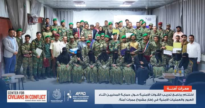 اختُتم بمحافظة الضالع، اليوم الخميس 16 أكتوبر 2025، البرنامج التدريبي الخاص بحماية المدنيين أثناء العبور والعمليات الأمنية، والذي استهدف مائة وخمسة وعشرين من ضباط وأفراد قوات الحزام الأمني بما فيهم الشرطة النسائية، في إطار مشروع “ممرات آمنة”، بتنفيذ مؤسسة عدن للحقوق والتنمية، بالشراكة مع مركز مدنيين في ظل الصراع (سيفيك) وتكتل مجتمعات مدنية، وذلك بحضور العميد عبدالله مهدي سعيد رئيس العمليات المشتركة، والعميد أحمد قايد القبة مدير عام شرطة محافظة الضالع قائد قوات الحزام الأمني، والأستاذة دينا المأمون المديرة الإقليمية لمركز مدنيين في ظل الصراع (سيفيك)، والوفد المرافق لها