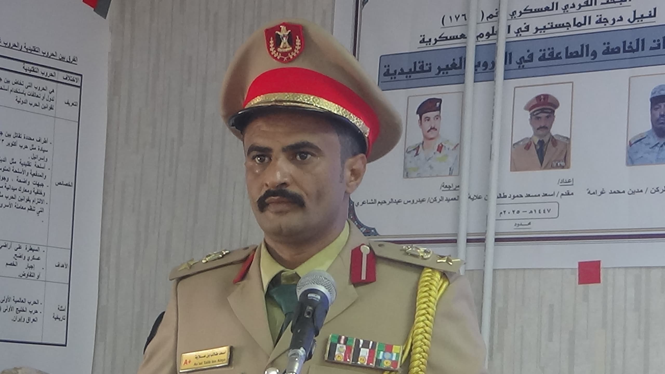حصل الباحث المقدم الركن أسعد مسعد حمود طالب الجحافي على درجة الماجستير بامتياز مع مرتبة الشرف الأولى من الأكاديمية العسكرية العليا، كلية القيادة والأركان في العاصمة عدن، عن رسالته العلمية الموسومة بـ “القوات الخاصة والصاعقة في الحروب غير التقليدية”، وذلك خلال المناقشة العلنية التي احتضنتها قاعة المناقشات الكبرى صباح اليوم الاثنين 3 نوفمبر 2025م.