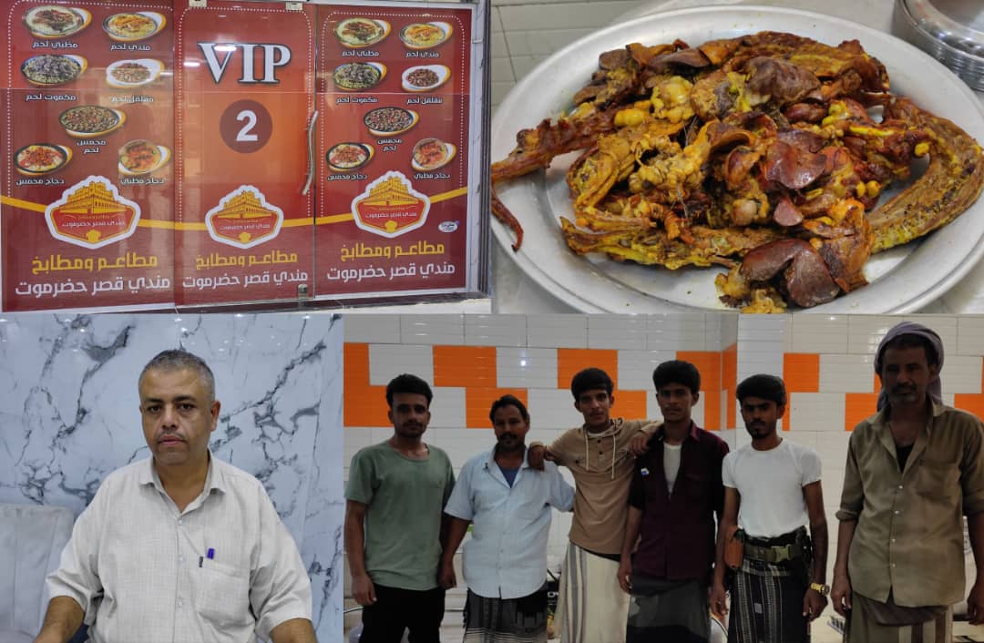 وفيما يتعلق بمطعم قصر مندي حضرموت فهو مطعم حديث نعلن اليوم عن افتتاحه بعد فترة من التحضيرات والاستعدادات، ويتميز مطاعمنا بالوجبات الحضرمية الخالصة المتمثلة بالمندي والمضبي والمحمس والمقلقل والمخمود، ويشمل ذلك اللحوم والدجاج البلدي الطازج، إضافة إلى أننا نتميز بتقديم الشاي الحضرمي بكل أصنافه، وبأسعار منافسة ونوعية ذات جودة عالية، إضافة خدمة التوصيل، وقسم خاص بالعائلات.