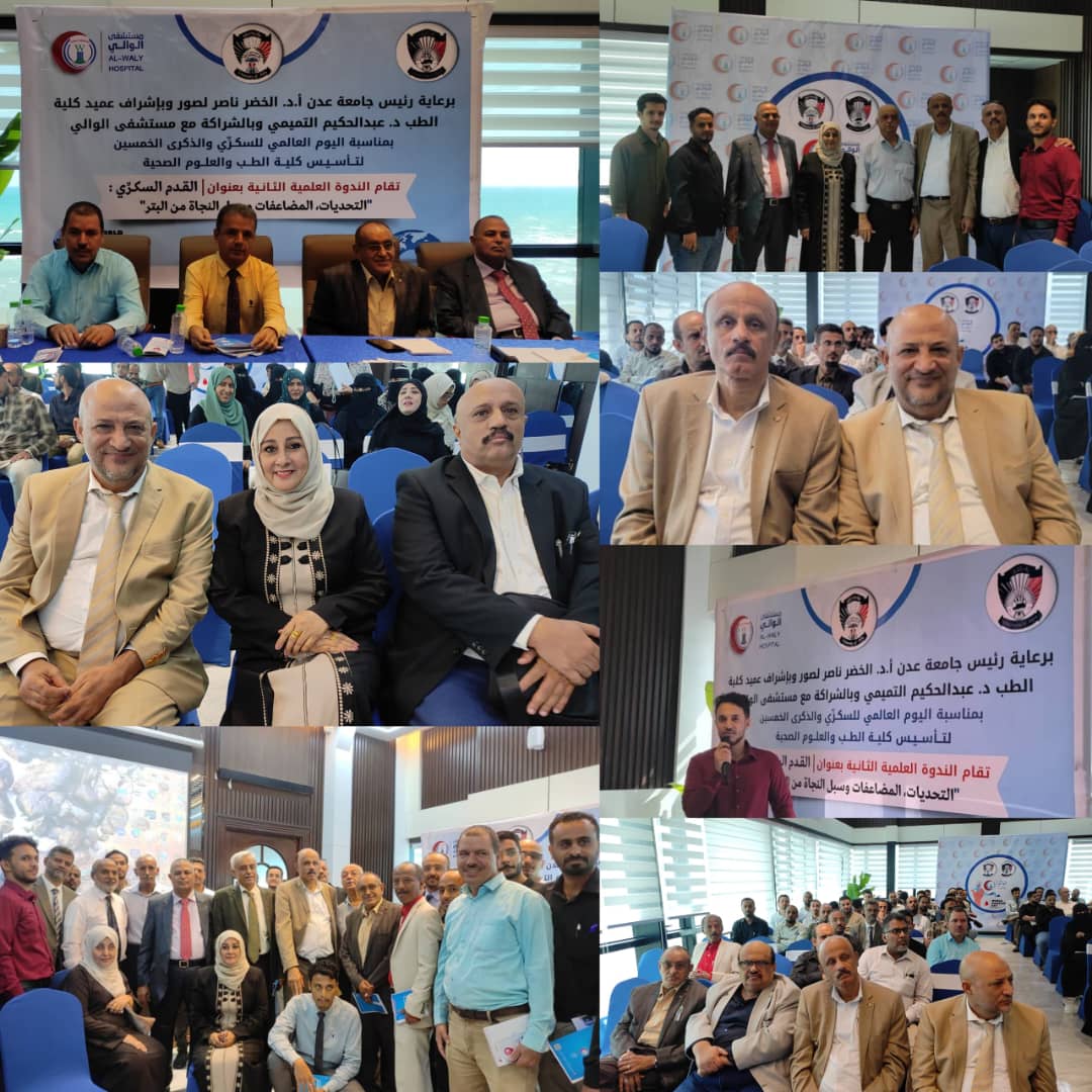 بحضور مدير عام مستشفى الوالي، الدكتور سالم الوالي، نظمت كلية الطب بالشراكة مع مستشفى الوالي النموذجي في العاصمة عدن اليوم الندوة العلمية الثانية بمناسبة اليوم العالمي للسكري، بعنوان: “القدم السكري: التحديات والمضاعفات وسبل النجاة من البتر”، وذلك في إطار الاحتفال بالذكرى الخمسين لتأسيس كلية الطب، وتحت رعاية رئيس جامعة عدن الأستاذ الدكتور الخضر لصور وإشراف عميد كلية الطب الدكتور عبد الحكيم التميمي.