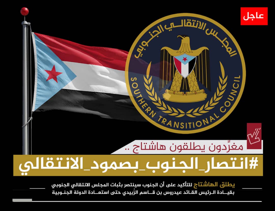 كما دعا السياسيون النشطاء كافة رواد منصات التواصل الاجتماعي إلى التفاعل مع هاشتاج #انتصار_الجنوب_بصمود_الانتقالي .