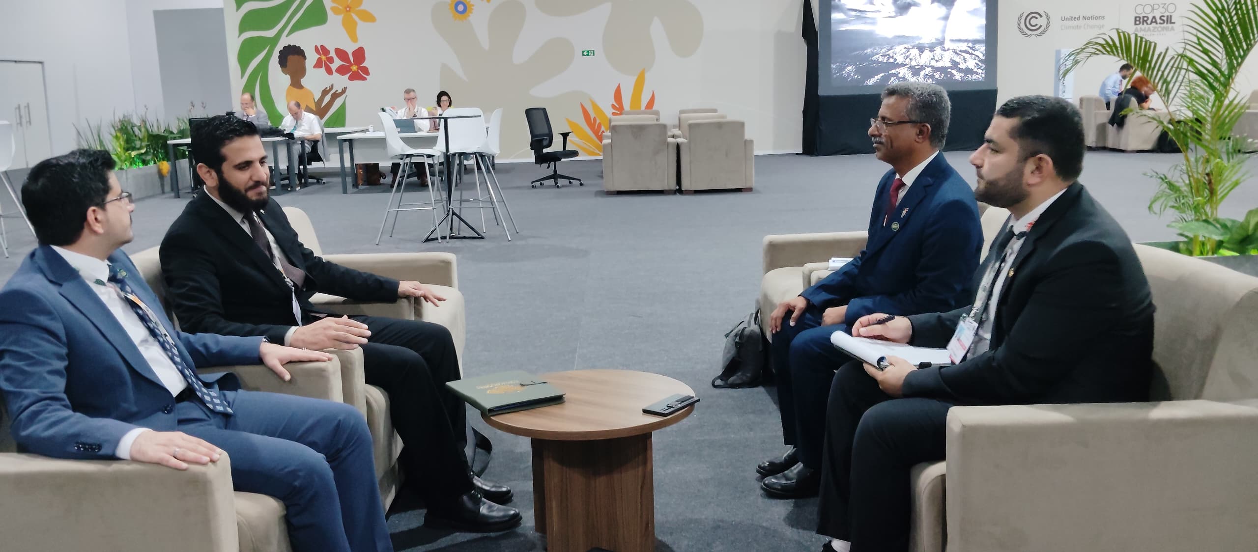 التقى نائب وزير المياه والبيئة، مجاهد بن عفرار، اليوم، رئيس فريق التفاوض السوري، الأستاذ أحمد سنده، مستشار وزير الإدارة المحلية لشؤون البيئة، وذلك على هامش أعمال مؤتمر المناخ (COP30) المنعقد في مدينة بيليم البرازيلية.