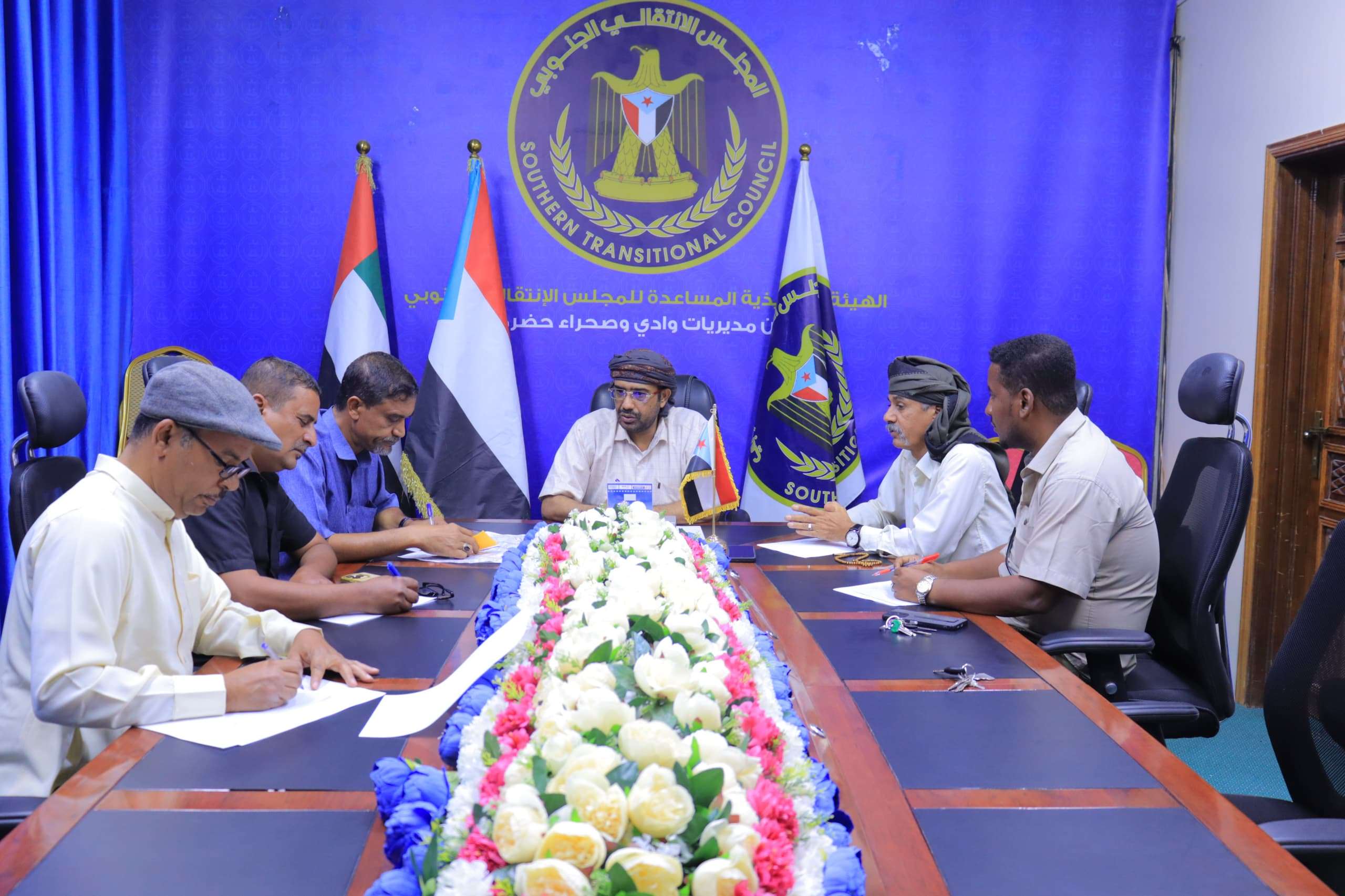 التقى رئيس الهيئة التنفيذية المساعدة للمجلس الانتقالي الجنوبي لشؤون مديريات وادي وصحراء حضرموت، محمد عبدالملك الزبيدي، اليوم الأحد، برئيس تنفيذية انتقالي مديرية سيئون، عبدالرحمن الجفري، لمناقشة الاستعدادات الجارية لإقامة فعالية الذكرى الـ58 لعيد الاستقلال الوطني 30 نوفمبر.