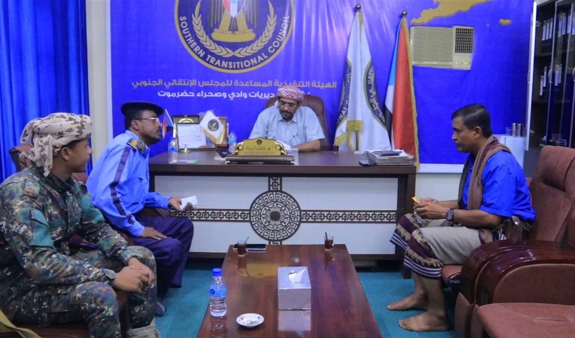بحث رئيس الهيئة التنفيذية المساعدة لشؤون مديريات وادي وصحراء حضرموت، محمد عبد الملك الزُبيدي، مع مدير عام شرطة السير بمديرية سيئون، النقيب منير بن زيمة، خطة تسيير وتنظيم حركة المرور لتسهيل وتنظيم حركة المرور استعداداً لفعالية الذكرى الـ 58 لعيد الاستقلال الوطني، المقررة يوم الأحد القادم المدينة سيئون.