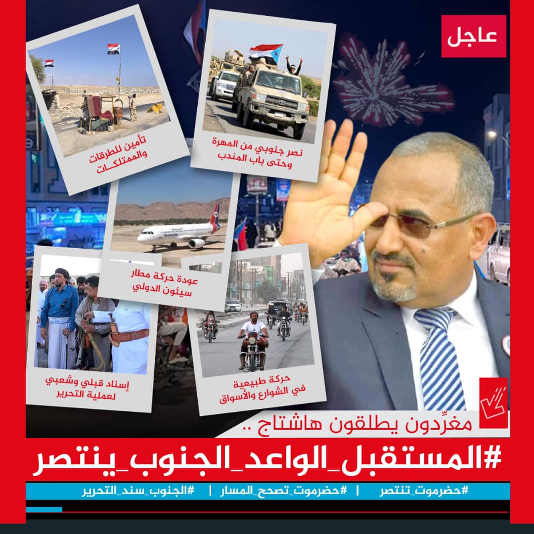 أشاد سياسيون ونشطاء جنوبيين بانتصارات القوات المسلحة الجنوبية العربية في وادي وصحراء حضرموت، والمهرة، وشبوة.