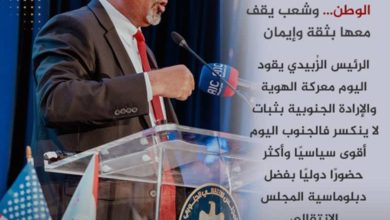 يرسم الجنوب خطوطًا حمراء لا يُسمح بتجاوزها تحت أي ظرف من الظروف ‘ وسيظل جاهزًا لمجابهة خطر الإرهاب على جميع الأصعدة ‘ مستخدمًا كل الإمكانيات اللازمة لحماية أمنه واستقراره والدفاع عن أراضيه ومكتسباته.