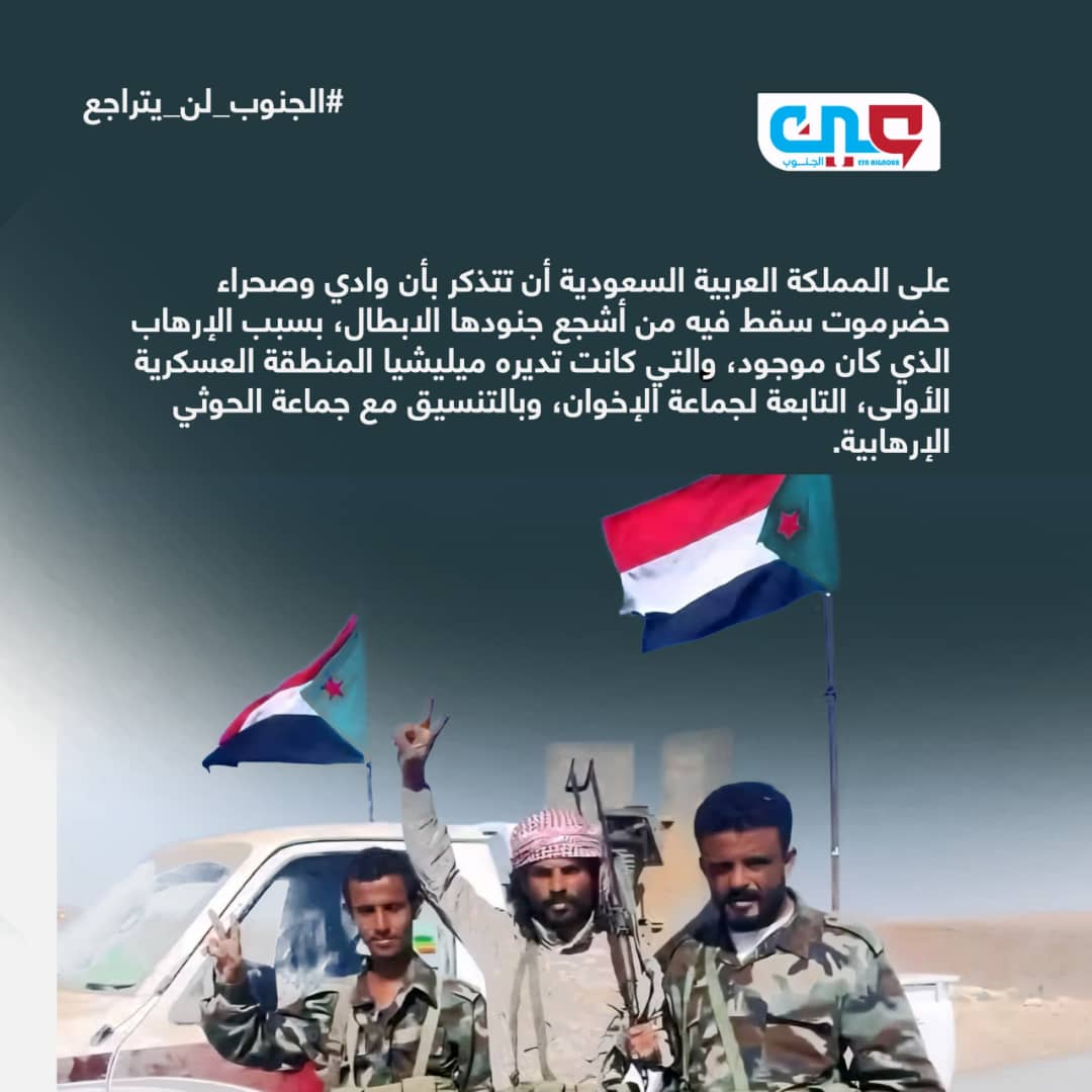 * يجب أن يتذكر الجميع وعلى رأسهم السعودية حالة الإرهاب في وادي وصحراء حضرموت بعد استشهاد جنودها بالقوات المسلحة السعودية