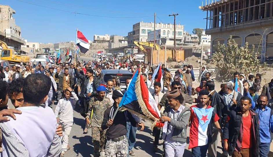 وأشاد رئيس تنفيذية انتقالي الضالع، العميد عبدالله مهدي، بالمشاركة الواسعة التي تمثل امتدادًا للحراك الشعبي المتصاعد بالمحافظة، فيما أكد الشيخ محمد السلقدي، في كلمة أبناء الشعيب، دعم الخطوات السياسية التي يقودها الرئيس القائد عيدروس الزُبيدي، في مسار نيل الاستقلال، وإعلان الدولة الجنوبية بكامل سيادتها.