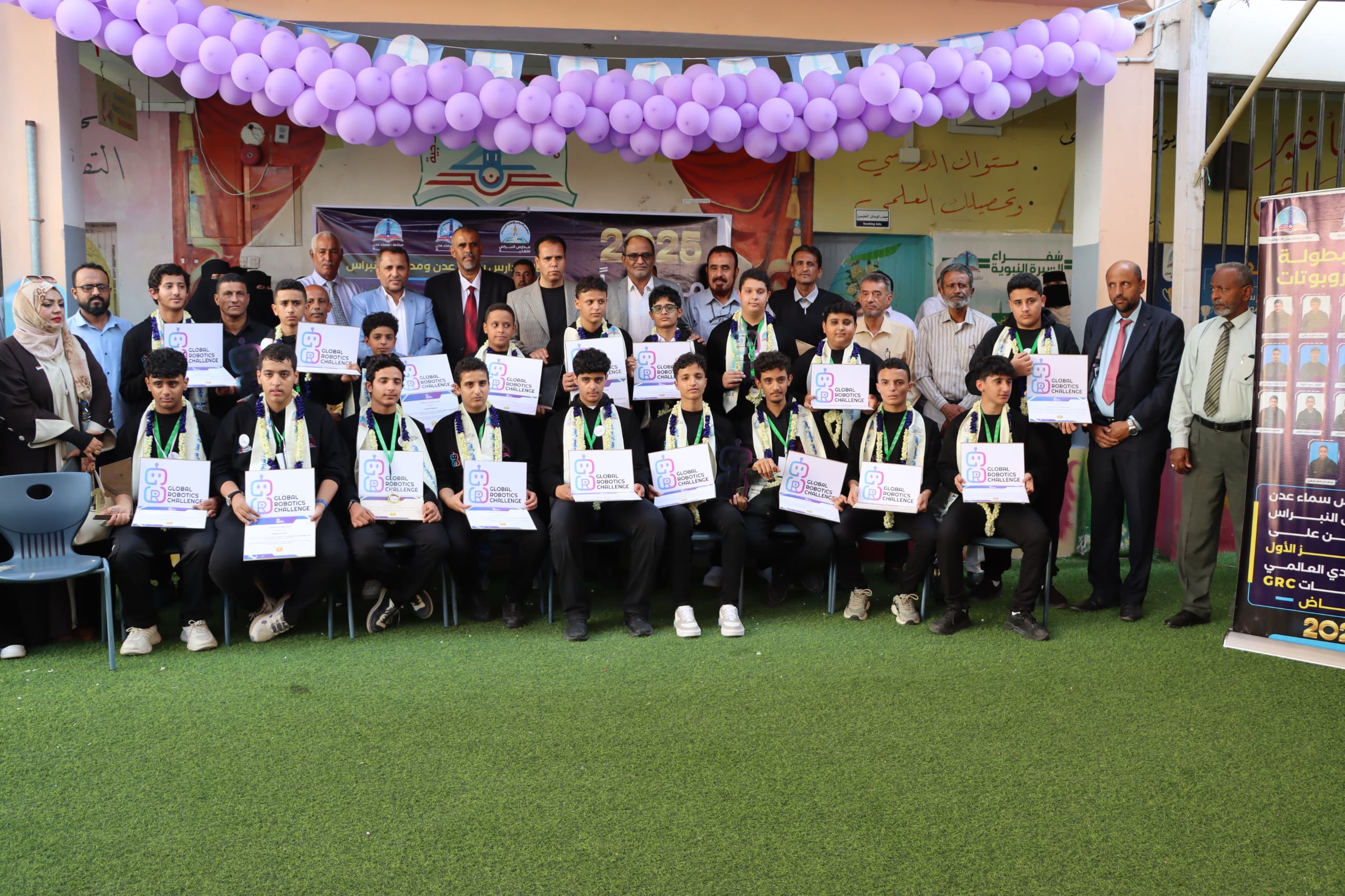 استقبلت العاصمة عدن، اليوم، أبطالها طلاب مدارس “سماء عدن” و “النبراس” ، بعد تتويجهم بالمركز الأول في التحدي العالمي للروبوتات (GRC 2025) الذي استضافته العاصمة السعودية الرياض.