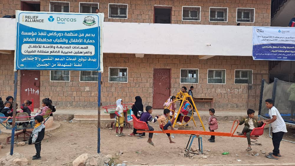 وأوضح مسؤول مؤسسة حماية الأطفال والشباب بمحافظة الضالع في كلمته أن المشروع نفذ بالشراكة مع منظمة _DORCAS_ وتمويل من التحالف الهولندي للإغاثة (DRA) ضمن مشروع الاستجابة المشتركة لليمن 2024‑2026. وشمل إنشاء وتجهيز المساحة الصديقة بالألعاب والمرافق اللازمة، وتنظيم أنشطة ترفيهية وتعليمية وثقافية، بالإضافة إلى جلسات الدعم النفسي والاجتماعي للأطفال وأسرهم لمساعدتهم على التعافي من الأزمات والضغوط النفسية الناجمة عن الصراع والمخاطر الأخرى.
