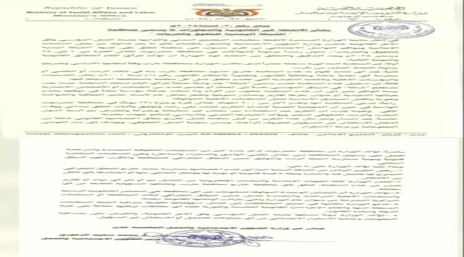 صادر عن وزارة الشؤون الاجتماعية والعمل – العاصمة عدن