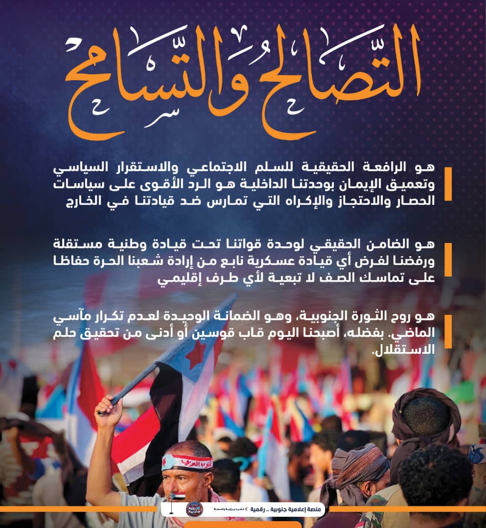 لم يكن التصالح والتسامح الجنوبي مجرّد مبادرة اجتماعية، بل مشروعًا سياسيًا وطنيًا عميق الأثر، أنهى صفحات الصراع الداخلي، وأعاد بناء الثقة بين أبناء الجنوب، ومهّد الطريق لوحدة القرار والهدف والمصير.