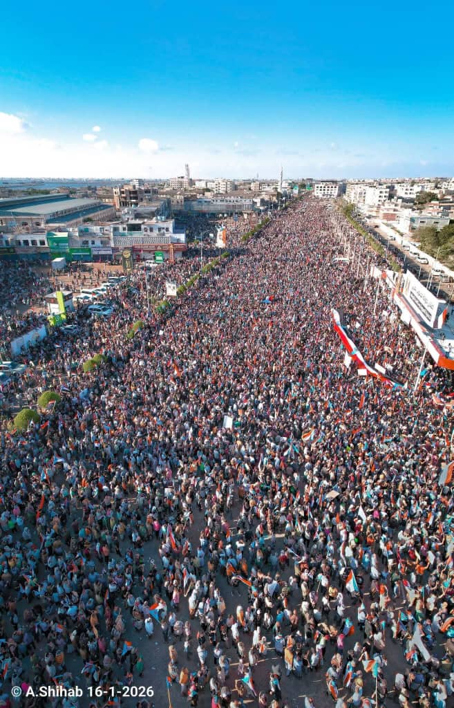 وإذ تعبّر هذه الجماهير عن تأييدها الكامل للبيان السياسي الصادر عن المجلس الانتقالي الجنوبي، فإنها تؤكد أن هذا البيان يجسّد تطلعات شعب الجنوب في مسار سياسي واضح، ومسؤول، ومتدرّج، يستند إلى التفويض الشعبي، ويحفظ حق الجنوب في استعادة دولته، ويقدّم للمنطقة والمجتمع الدولي خياراً واقعياً للاستقرار.