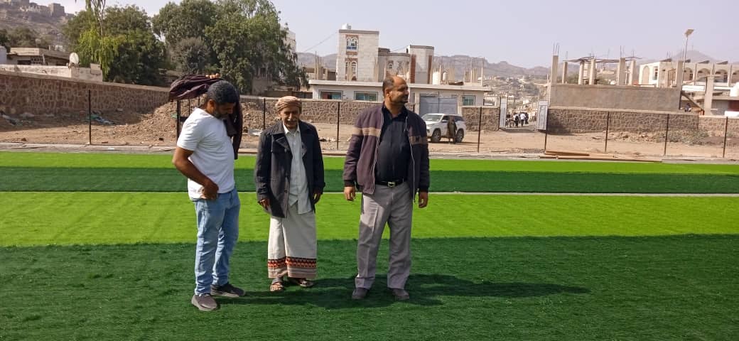 تفقدا مأمور مديرية الضالع المناضل عبدالواسع صالح احمد ومعه مدير إدارة الشباب والرياضة بالمديرية الكابتن احمد سعد سير عملية تعشيب ملعب الصمود الرياضي في عاصمة المديرية