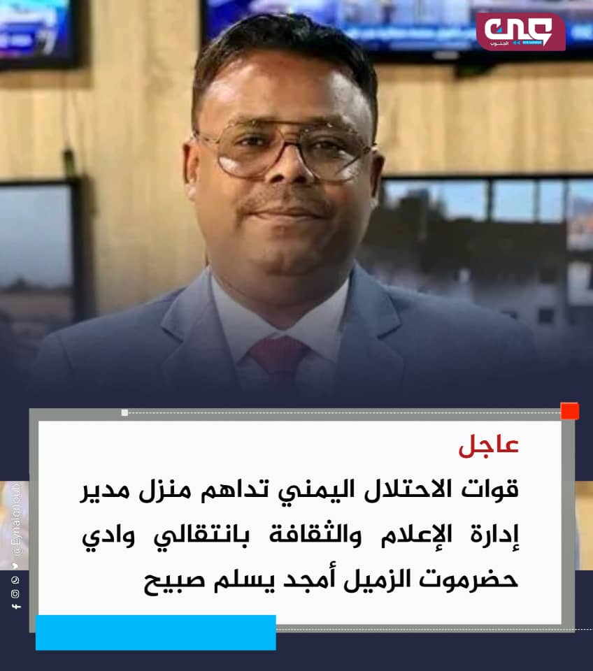 حاصرت قوات الطوارئ التابعة للاحتلال اليمني والمدعومة سعوديًا، مساء اليوم، منزل الصحفي الجنوبي أمجد يسلم صبيح رئيس تحرير موقع وصحيفة حضرموت 21 في مدينة تريم بوادي حضرموت، في خطوة أثارت موجة غضب واستنكار واسعة في الأوساط الإعلامية والمجتمعية.