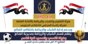 دشنت عصر اليوم الاثنين “السادس من رمضان” بمديرية الضالع منافسات بطولة التحدي والصمود الرمضانية لكرة القدم للفرق الشعبية، التي ينظمها قسم الشباب والرياضة بالهيئة التنفيذية للمجلس الانتقالي الجنوبي بالمديرية، برعاية هيئة التعليم والشباب والرياضة بالأمانة العامة للمجلس.