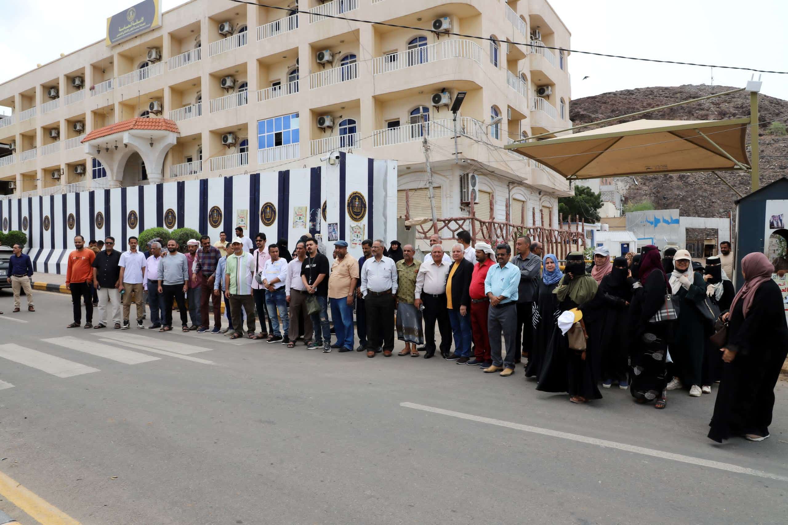 واصلت قيادة وكوادر الأمانة العامة لهيئة رئاسة المجلس الانتقالي الجنوبي، لليوم الثاني عشر على التوالي، تنظيم وقفتها الاحتجاجية أمام مبناها في العاصمة عدن، رفضاً لاستمرار إغلاق مقرها، وتأكيداً على مواصلة العمل السياسي والنضال السلمي دفاعاً عن قضية شعب الجنوب.