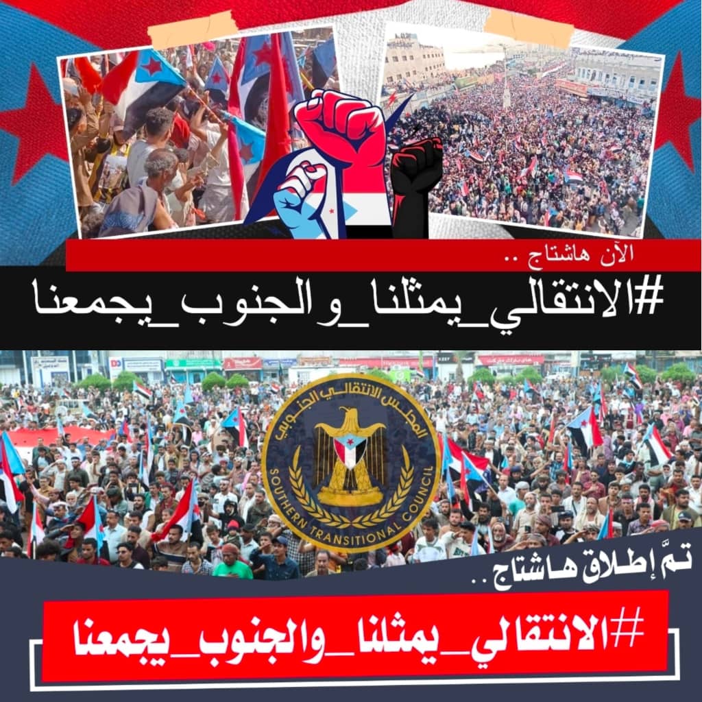 أطلق مغردون جنوبيون اليوم السبت، هاشتاج الانتقالي يمثلنا والجنوب يجمعنا، تأكيدا على أن كافة أبناء شعب الجنوب العربي العظيم، لا يعترفون بأي ممثل غير المجلس الانتقالي الجنوبي المفوض بقيادة الرئيس القائد عيدروس بن قاسم الزُبيدي.