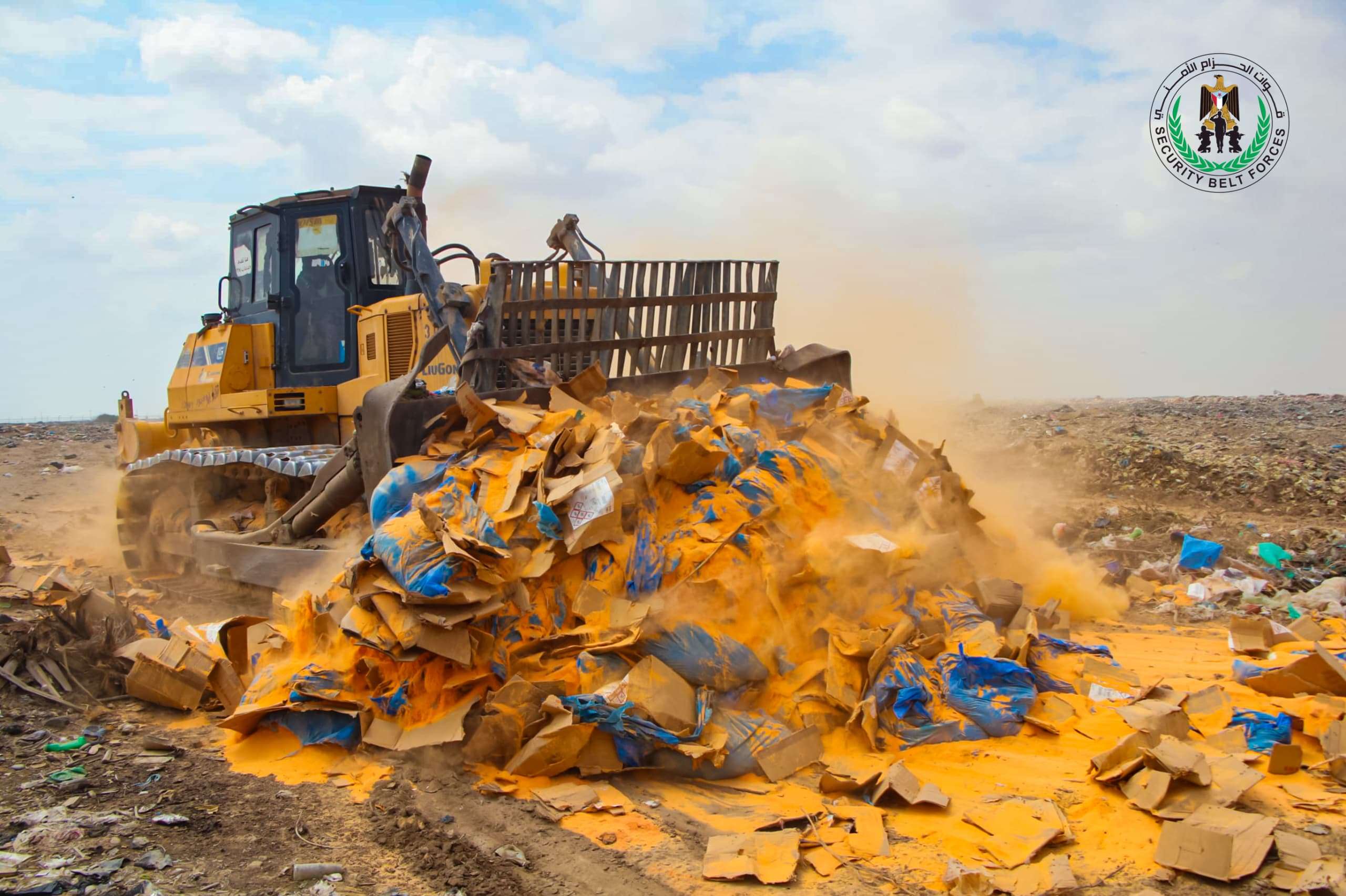 قوات الحزام الأمني تُتلف شحنة استهلاكية منتهية الصلاحية في العاصمة عدن
