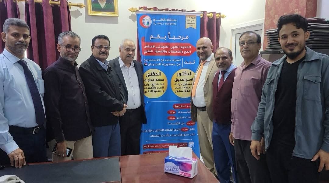 وفي التدشين، وبحضور مدير مكتب الصحة العامة والسكان بالمديرية، الدكتور عبدالحكيم المفلحي، استمع “الداؤودي” و “الدكتور البيشي”، من مدير عام المستشفى، سالم عبدالله الوالي، إلى شرح مفصل عن الخدمات والرعاية الصحية والطبية، الذي سيقدمها المخيم للمواطنين، تحت إشراف إستشاريين من جمهورية السودان الشقيقة، في علاج أمراض المخ والأعصاب والعمود الفقري وعرق النساء، لافتاً إلى أن المخيم سيستقبل المرضى – بعد أن تم تسجيلهم مؤخراً – بمعاينتهم وفحصهم مختبرياً وصرف الأدوية مجاناً، بالإضافة إلى خصم 50% على الأشعة.