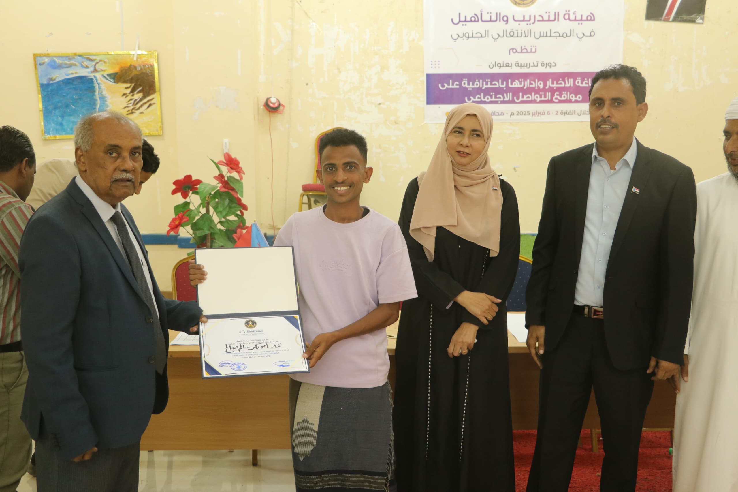 أشاد المدرب الدكتور عبدالله الحو، رئيس قطاع التدريب السياسي والإعلامي في هيئة التدريب والتأهيل بالمجلس الانتقالي الجنوبي، بالمتدرب الإعلامي محمد أبوبكر بن قبلان خلال ختام الدورة التدريبية المتخصصة بعنوان “صياغة الأخبار وإدارتها باحترافية على مواقع التواصل الاجتماعي”، التي نظمتها الهيئة في محافظة سقطرى، في قاعة المجمع الكويت التربوي بمدينة حديبو. الدورة التي استمرت لمدة خمسة أيام، هدفت إلى تقديم مهارات صحفية متقدمة للمشاركين في مجال الأخبار الرقمية وصياغتها بالشكل الذي يتناسب مع منصات التواصل الاجتماعي، وانتهت في يوم الأربعاء 6 فبراير 2025.