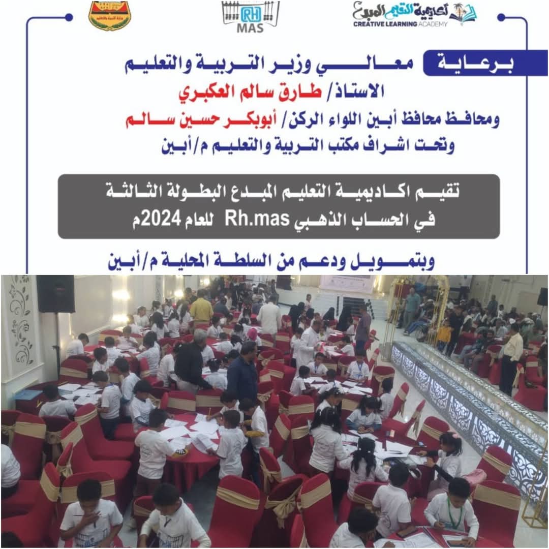 شكا غالبية أهالي التلاميذ الفائزين في المسابقة الدولية للحساب الذهني التي نظمتها أكاديمية التعليم المبدع برعاية معالي وزير التربية والتعليم أ. طارق العكبري ومحافظ محافظة أبين اللواء الركن/ أبوبكر حسين سالم وتحت إشراف مدير عام مكتب التربية والتعليم بأبين د. وضاح المحوري .