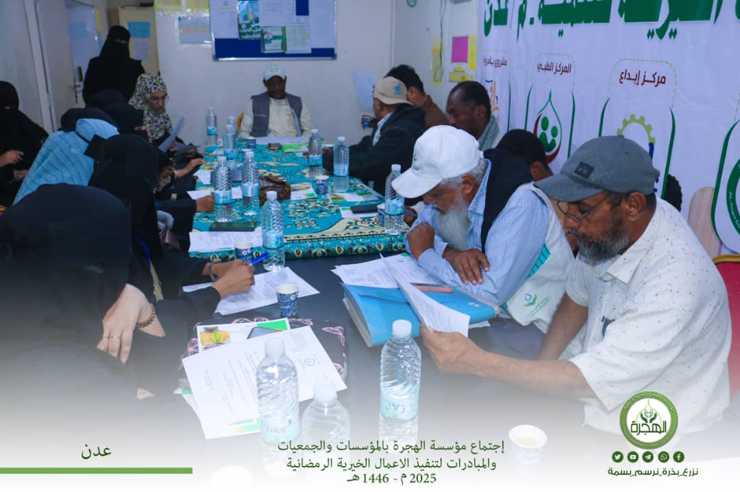 بهدف توحيد وتنسيق جهود المؤسسات والجمعيات والمبادرات الخيرية لتنفيذ أعمال الحملة الرمضانية لمؤسسة الهجرة الخيرية في موسمها الحادي عشر بعنوان “رمضان عطاء وإحسان” ، اجتمعت إدارة مؤسسة الهجرة يوم أمس الخميس ٢١ شعبان ١٤٤٦هـ ، الموافق 20 فبراير 2025م ، ممثلة بالأستاذ علي باحميش والأستاذ صالح بجنف و الأستاذة منية رمزي بممثلي عدد من المؤسسات والجمعيات والمبادرات الخيرية بالعاصمة عدن في مقر مؤسسة الهجرة بالمنصورة.