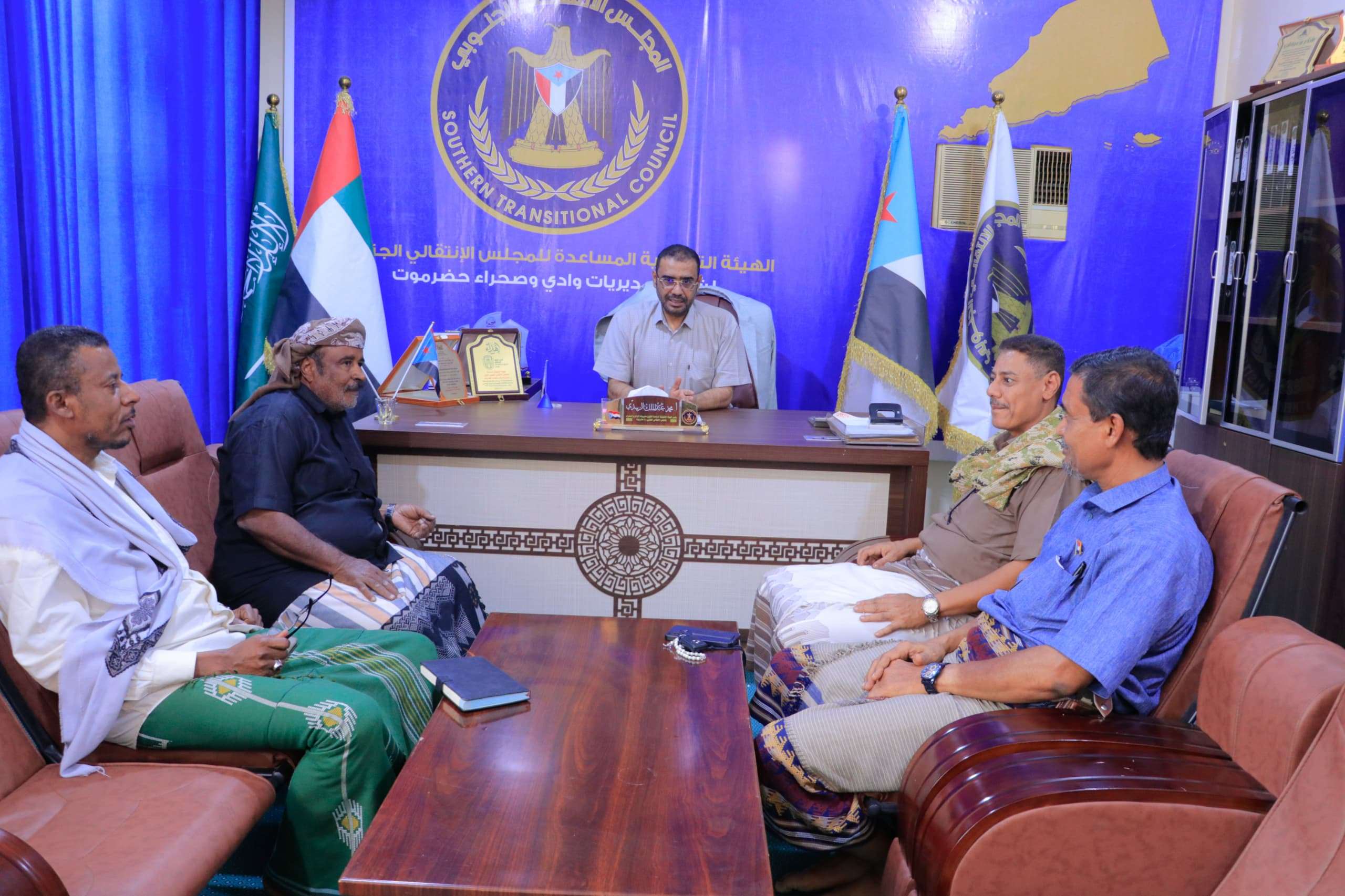 التقى رئيس الهيئة التنفيذية المساعدة للمجلس الانتقالي الجنوبي لشؤون مديريات وادي وصحراء حضرموت، محمد عبدالملك الزبيدي، اليوم الثلاثاء، رئيس لجنة التعليم العام في الجمعية الوطنية للمجلس، زيد عائض بن حريز.