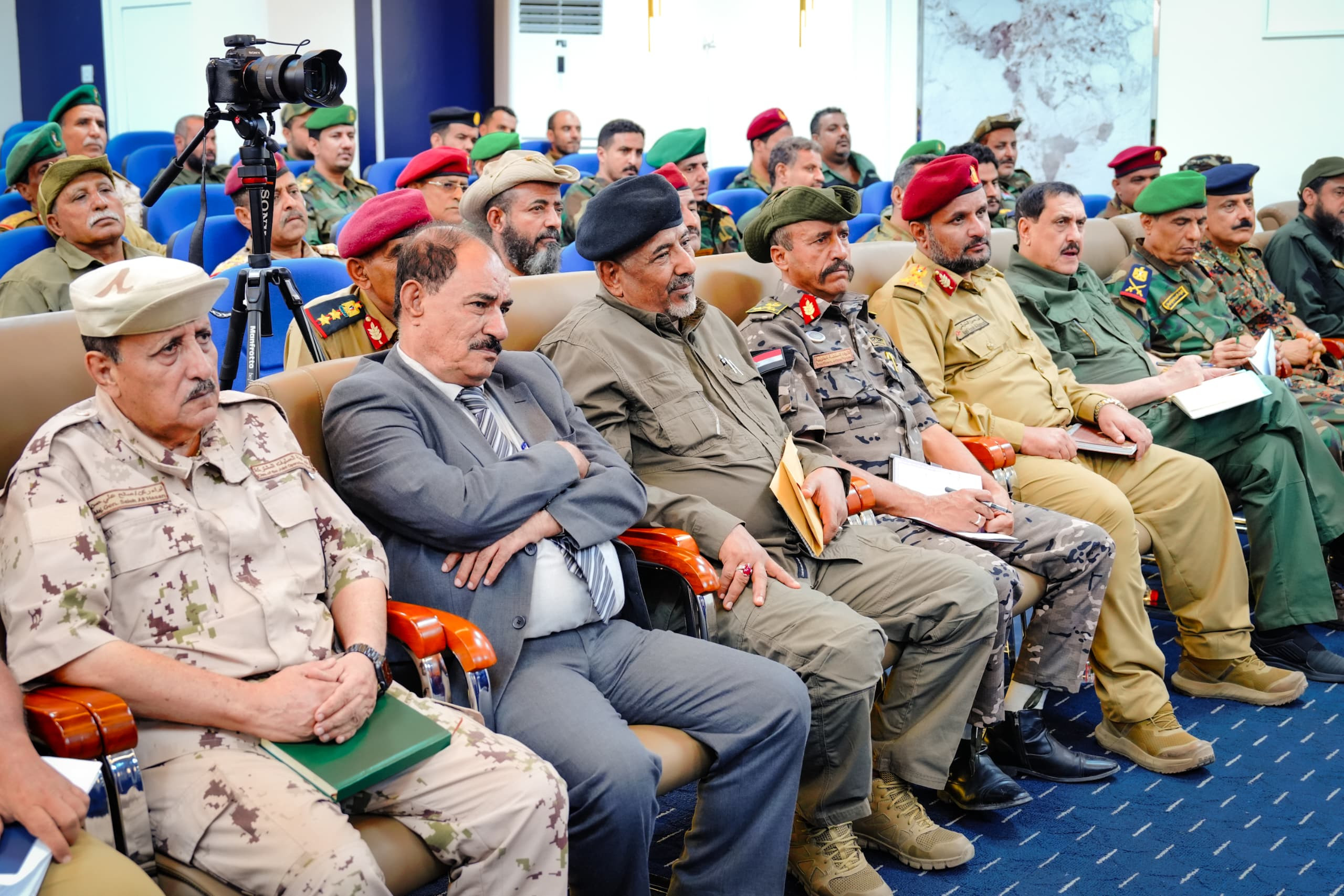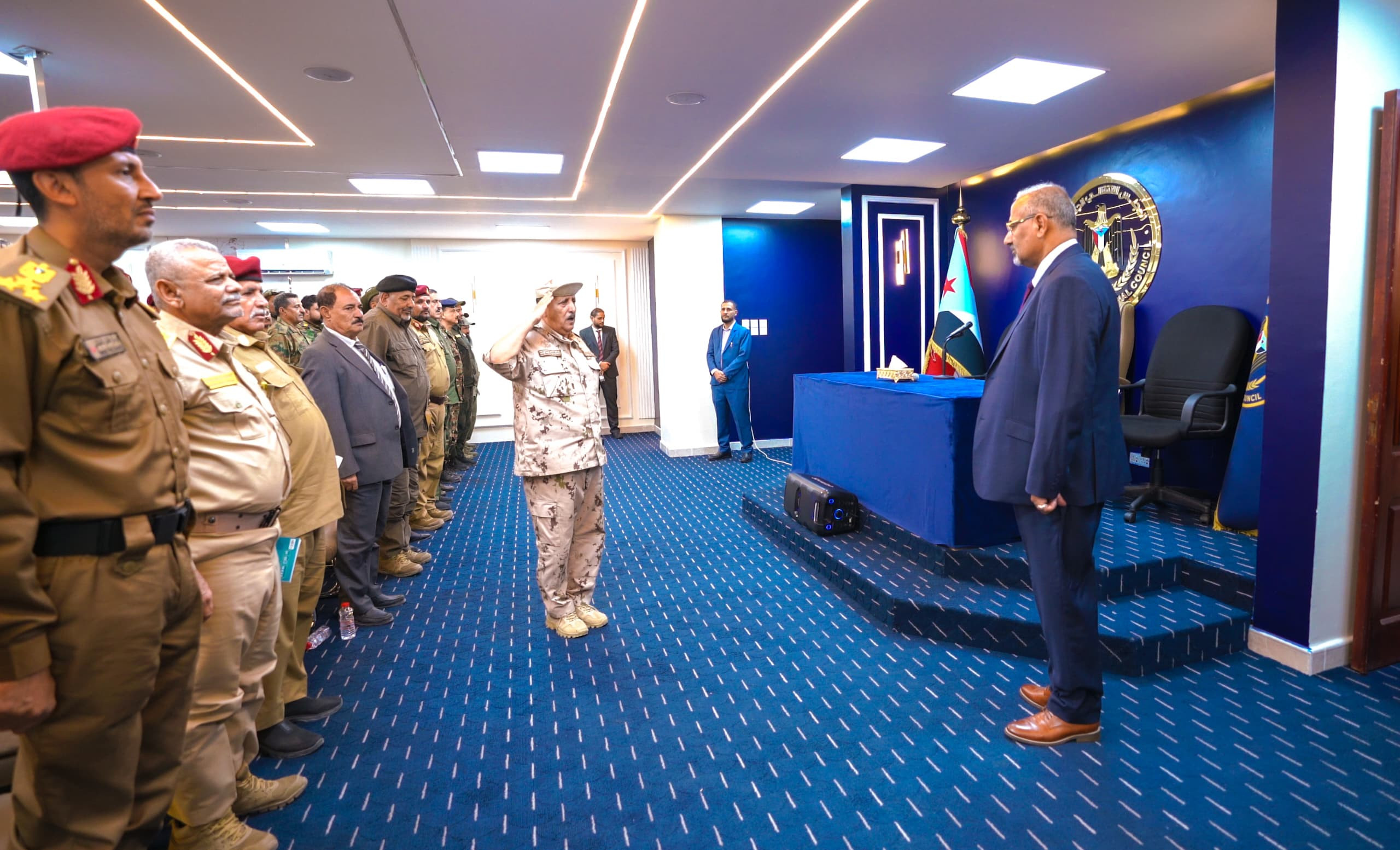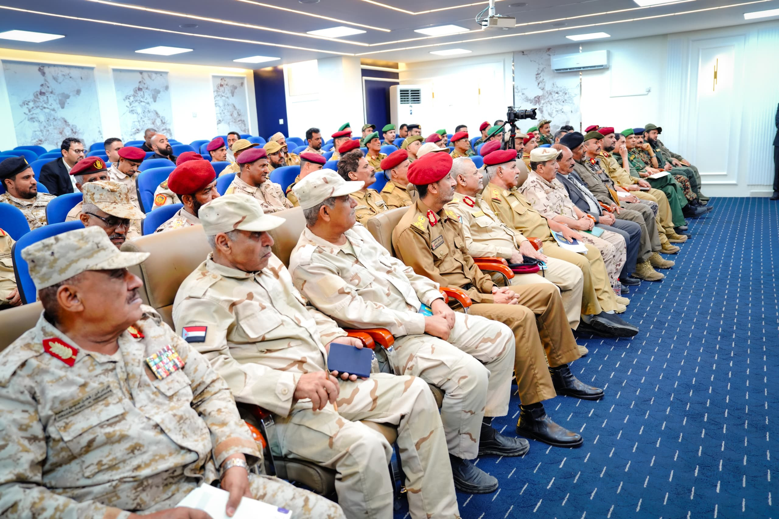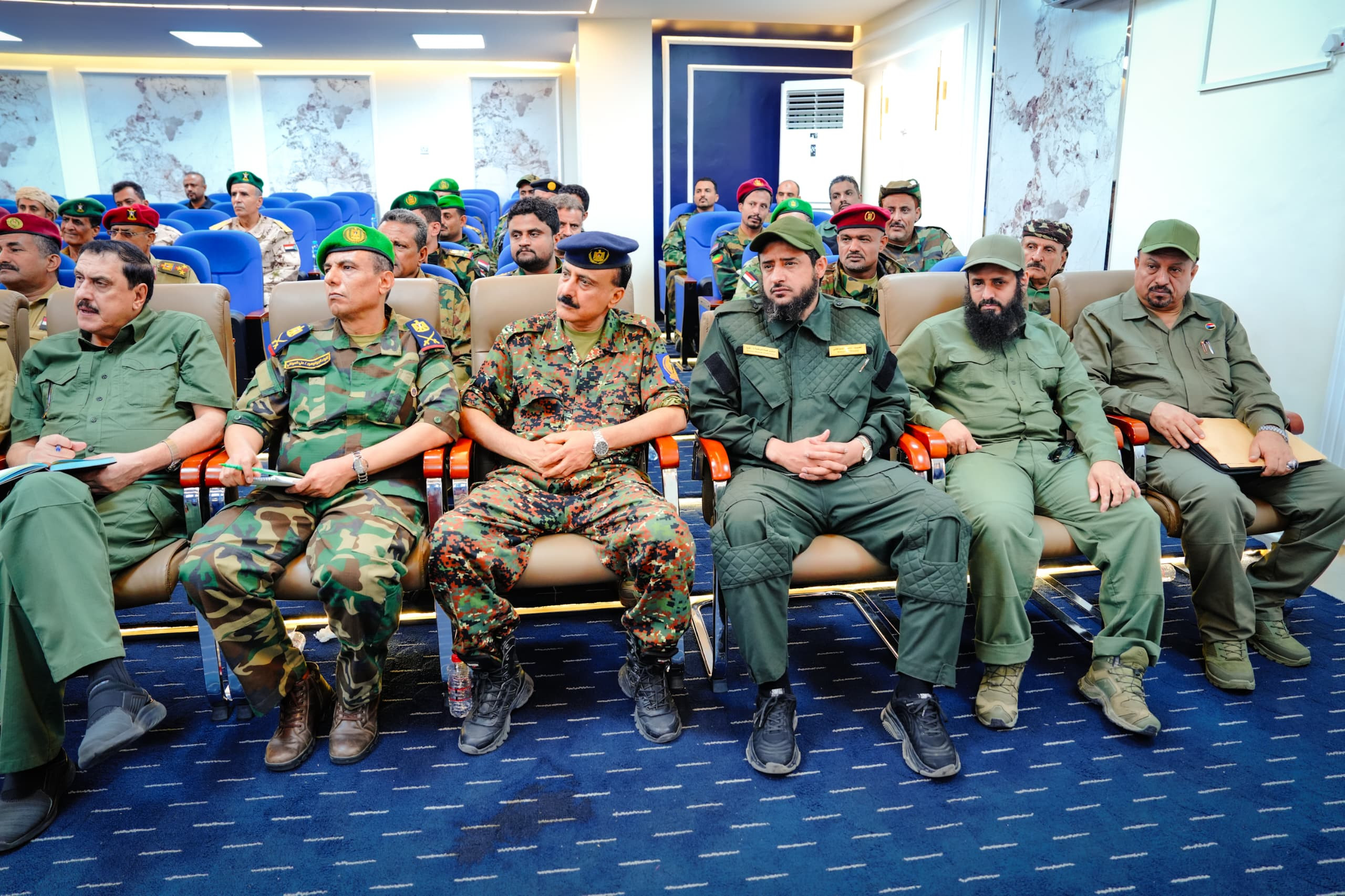 واستمع الرئيس القائد بعدها من قادة الألوية والوحدات العسكرية والأمنية إلى شرحٍ وافٍ حول مستوى التأهيل والتدريب للقوات وما وصلت إليه من جاهزية وتنظيم، وفقًا لعملية الهيكلة التي شملت جميع الوحدات العسكرية والأمنية، بالإضافة إلى الخطط والاستراتيجيات الرامية إلى رفع مستوى التنسيق بين الوحدات المختلفة، لتعزيز حالة الأمن والاستقرار بحسب مهام ومسؤوليات كل وحدة.