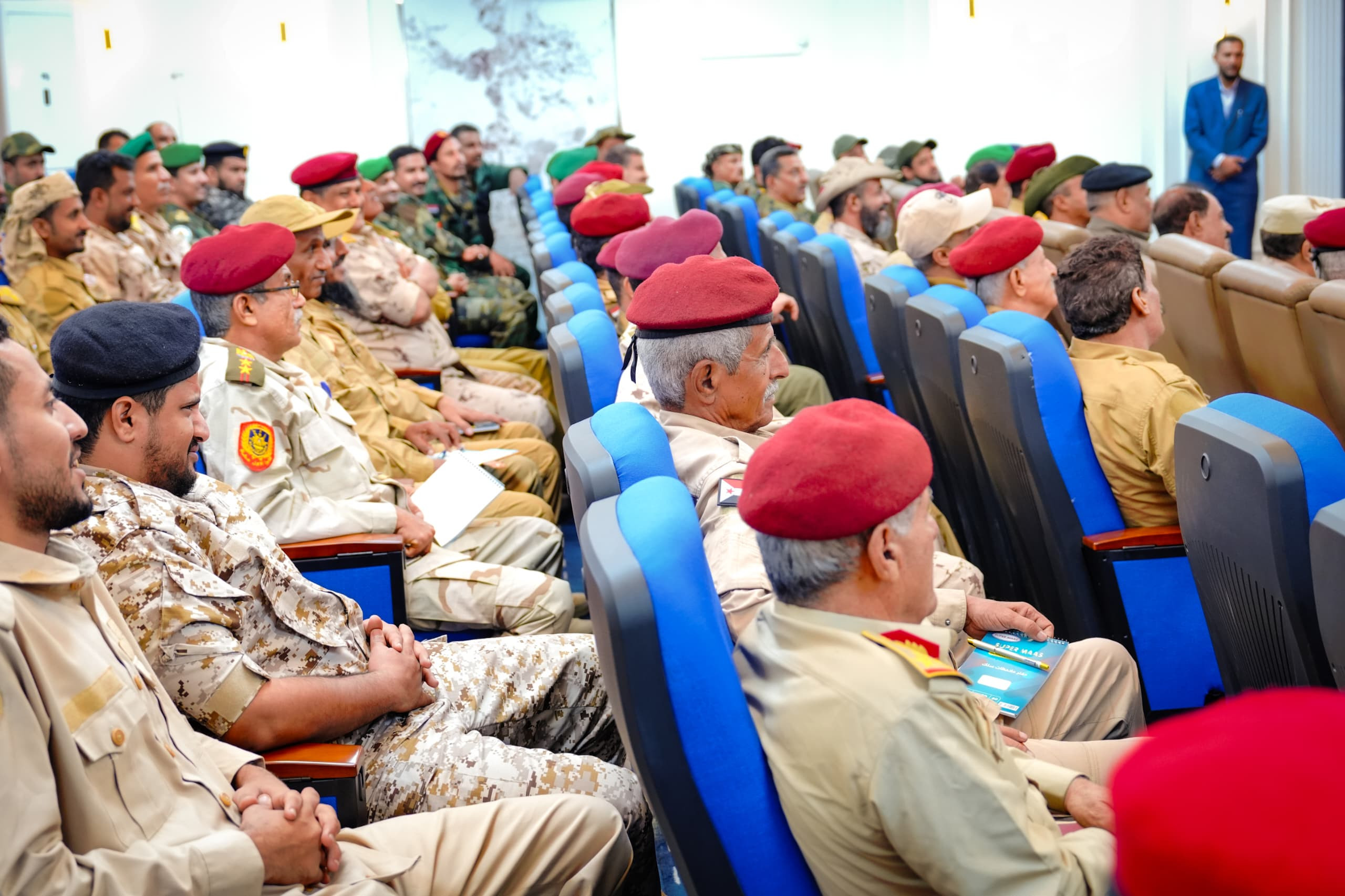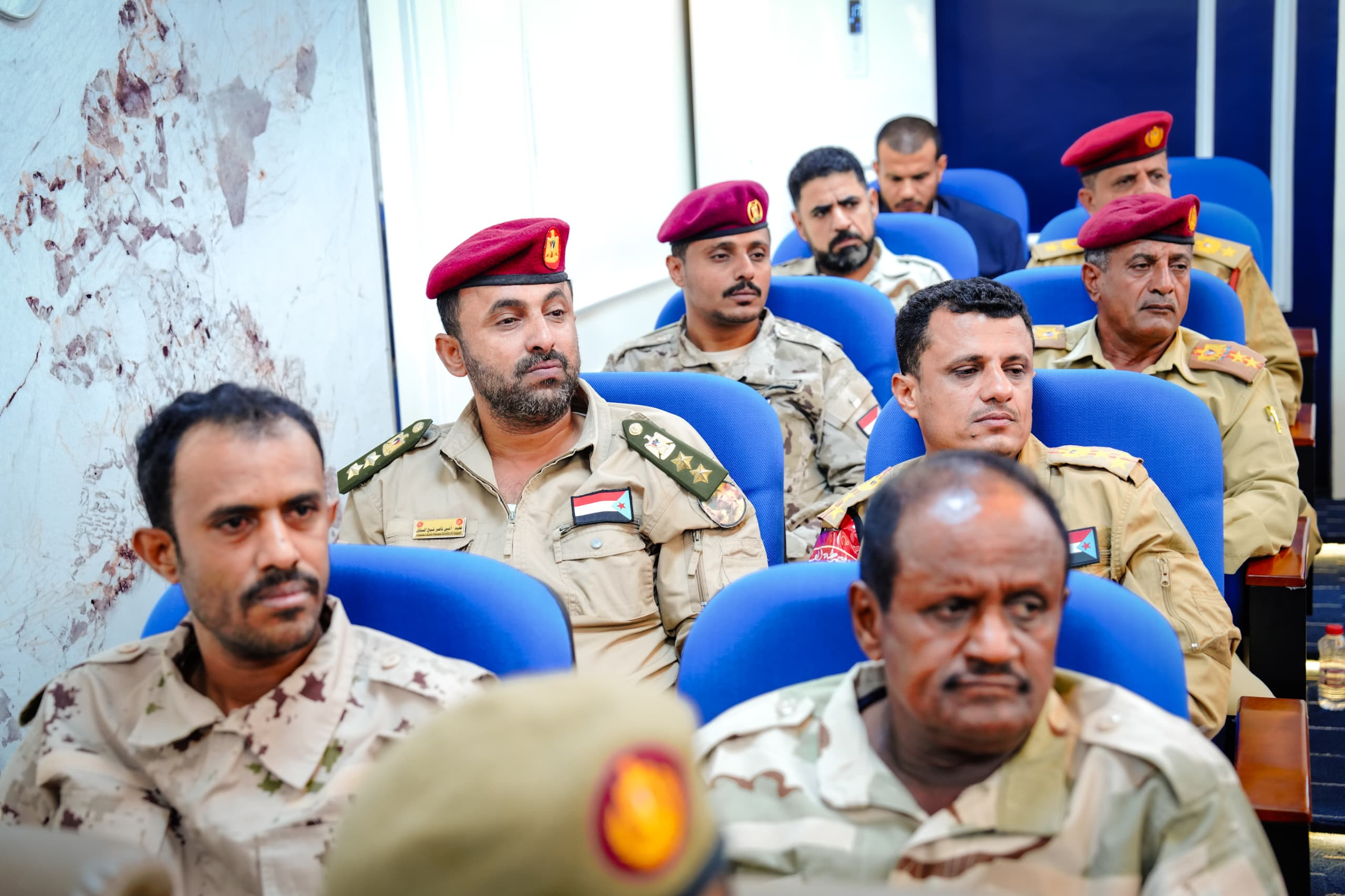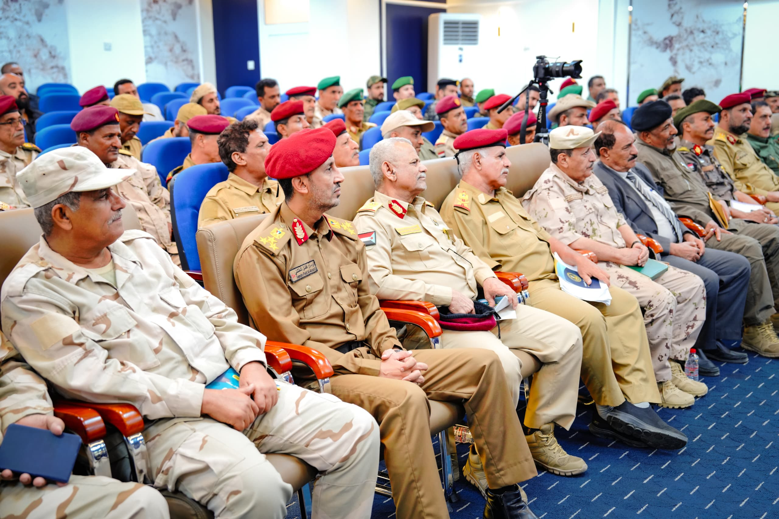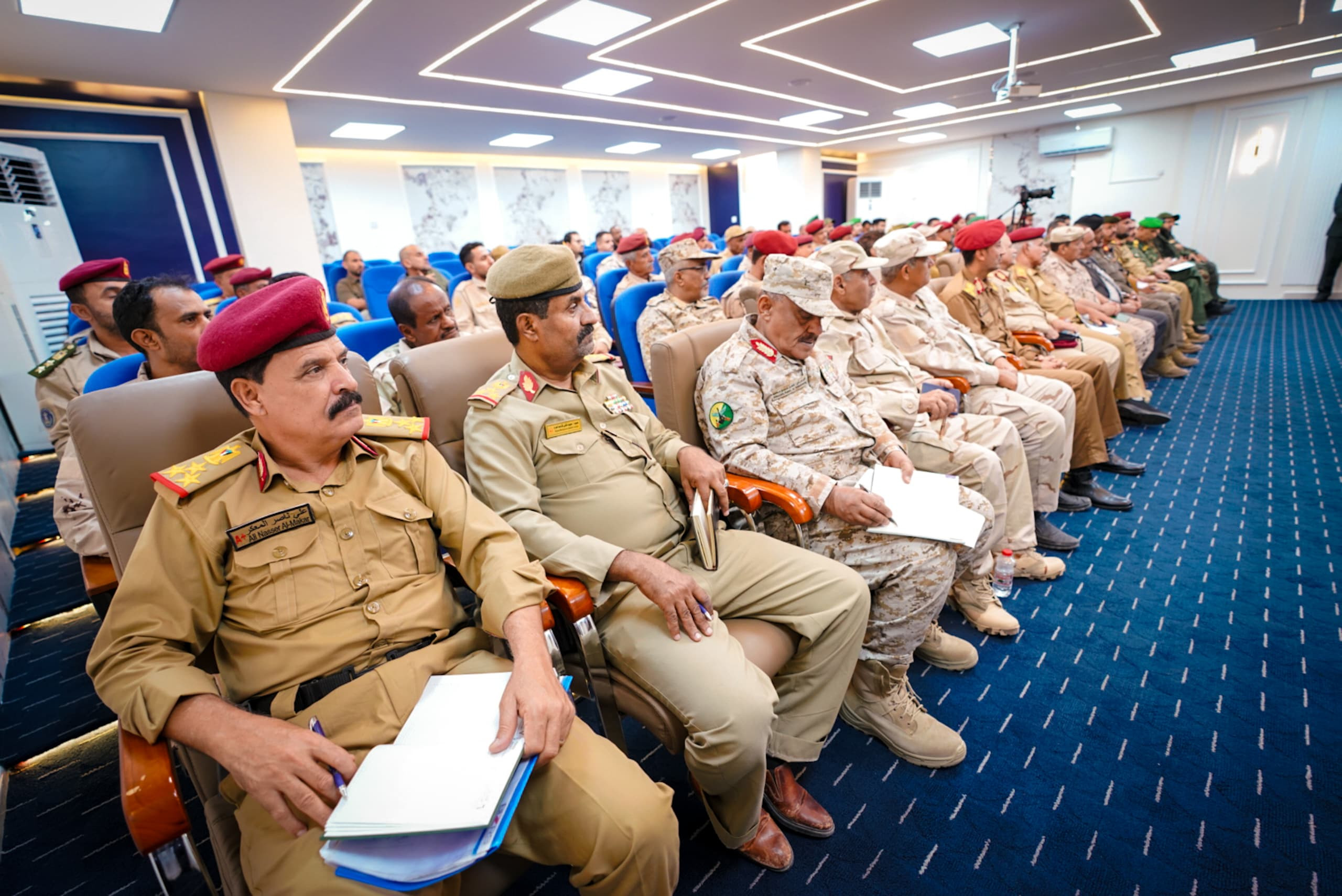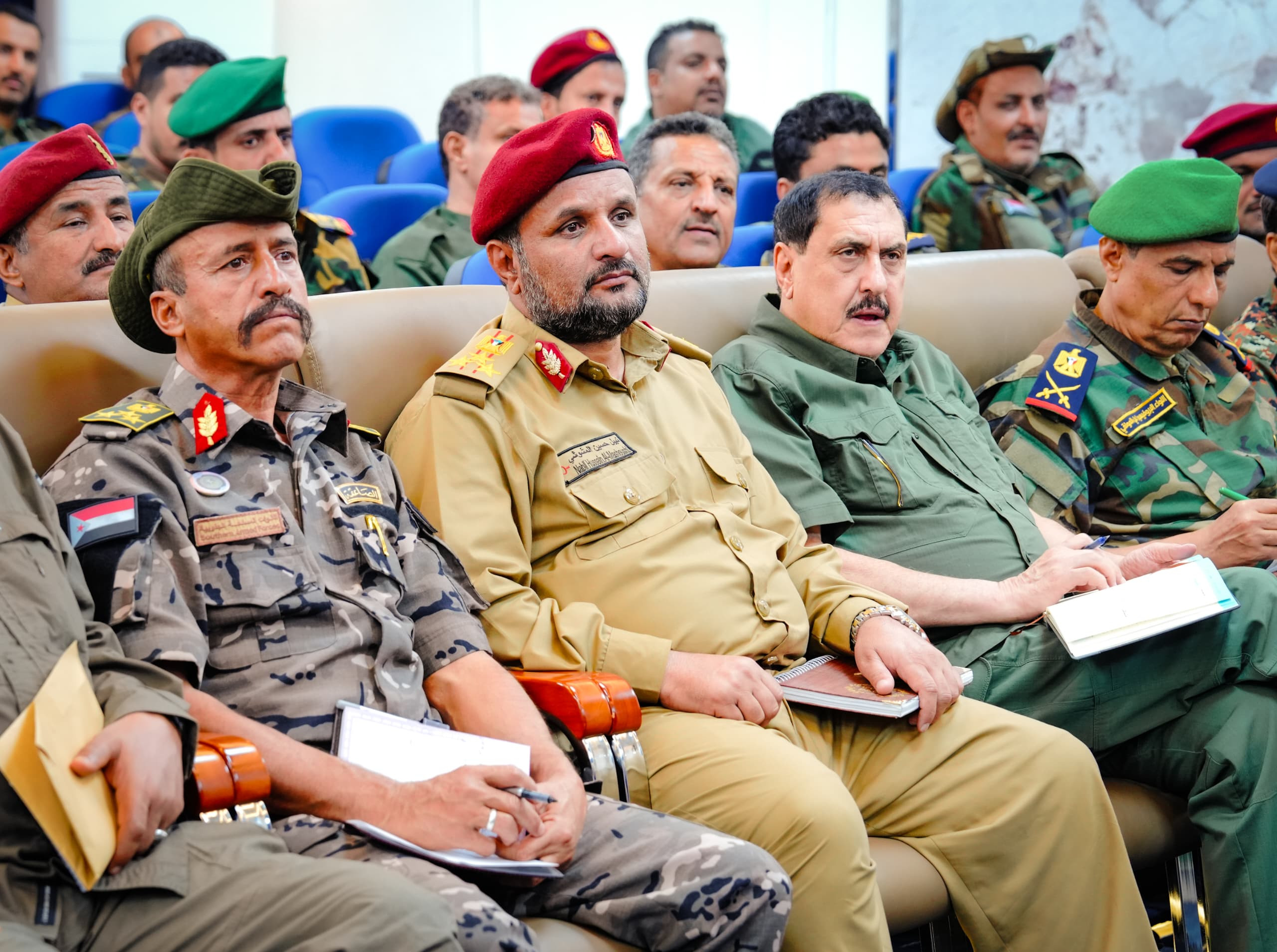 واستمع الرئيس القائد بعدها من قادة الألوية والوحدات العسكرية والأمنية إلى شرحٍ وافٍ حول مستوى التأهيل والتدريب للقوات وما وصلت إليه من جاهزية وتنظيم، وفقًا لعملية الهيكلة التي شملت جميع الوحدات العسكرية والأمنية، بالإضافة إلى الخطط والاستراتيجيات الرامية إلى رفع مستوى التنسيق بين الوحدات المختلفة، لتعزيز حالة الأمن والاستقرار بحسب مهام ومسؤوليات كل وحدة.