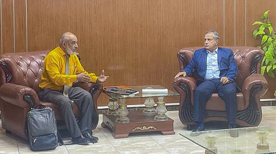 بحث الأستاذ الدكتور/الخضر ناصر لصور رئيس جامعة عدن صباح الأربعاء في مكتبه بديوان رئاسة الجامعة، مع الدكتور/ثابت سالم العزب رئيس الجمعية الوطنية للبحث العلمي والتنمية المستدامة، مجالات التعاون المشترك بين الجانبين وسبل تطويرها.