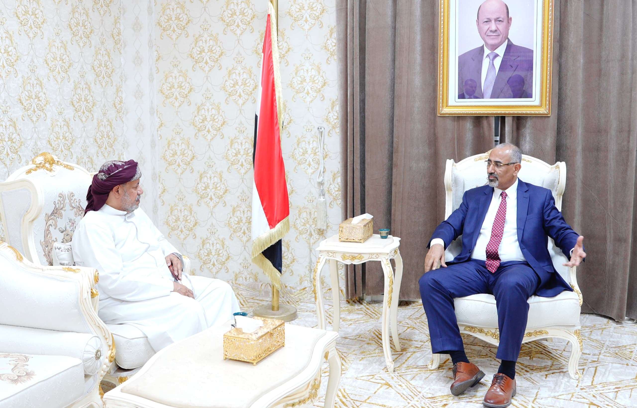 التقى الرئيس القائد عيدروس قاسم الزُبيدي، رئيس المجلس الانتقالي الجنوبي، نائب رئيس مجلس القيادة الرئاسي، مساء اليوم، في القصر الرئاسي المهرة، بالسلطان عبدالله بن عيسى آل عفرار، عضو هيئة رئاسة المجلس الانتقالي الجنوبي، رئيس المجلس العام لأبناء المهرة وسقطرى.