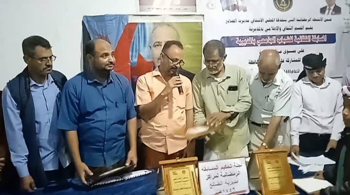 كما قام رئيس المجلس بالمديرية ومدير إدارة الإعلام بانتقالي المحافظة ولجنة المسابقة بتكريم المراكز المشاركه بشهادات تقديرية والتي تقدر ب 29 مركز مشارك