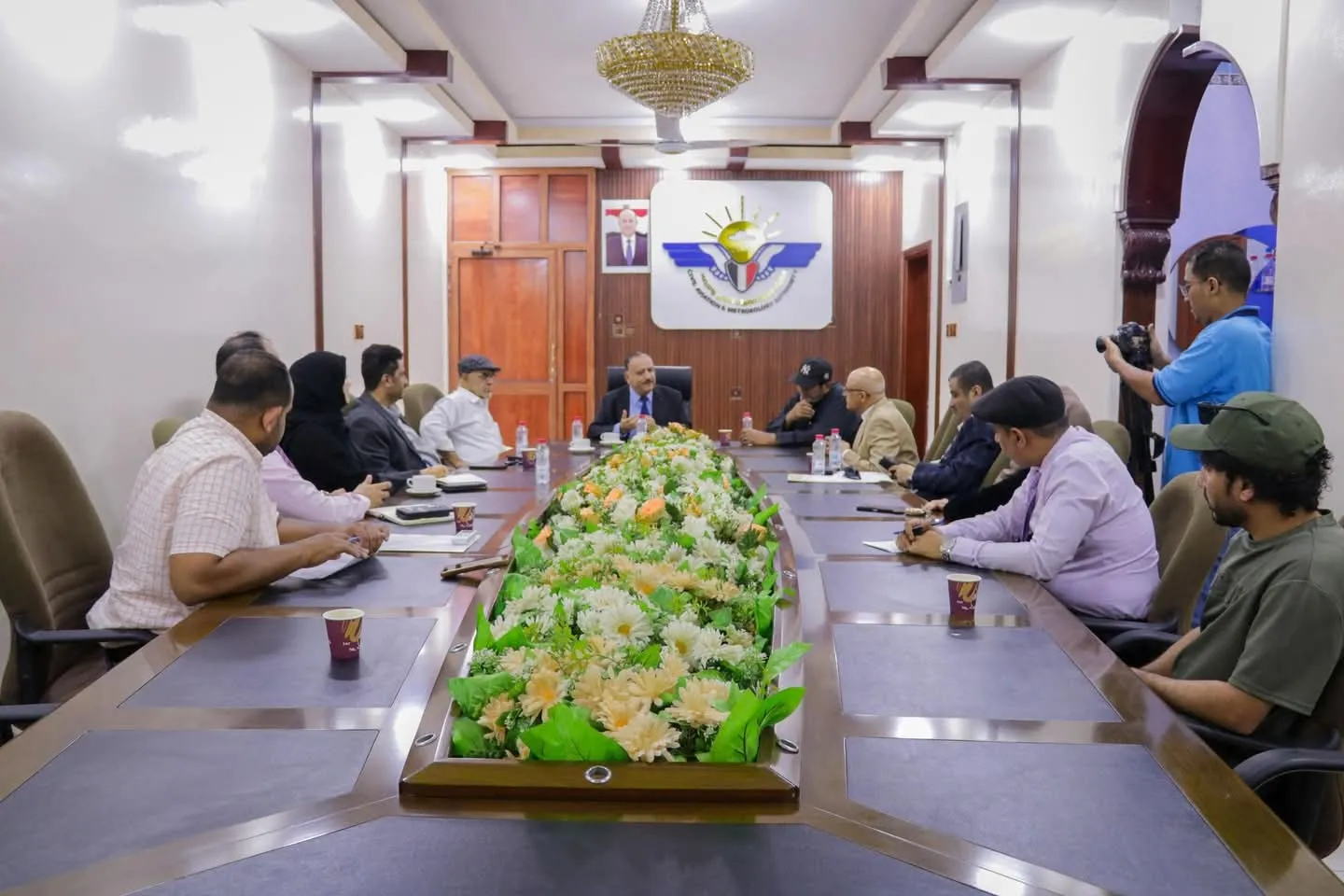 عقب الجولة التفقدية، عقد معالي وزير النقل، اجتماع مع قيادة الهيئة والوكلاء ومدراء العموم، لمناقشة سير العمل في مشاريع مطار عدن الدولي.